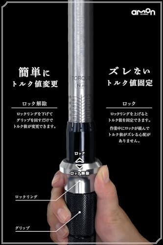 ◆ロックリング式でトルク変更が簡単。ロックリングを下げるとトルクを固定でき、作業中にロックが緩んでトルク値がズレる心配なし。◆軽自動車から大型SUVまでこれ1本で。