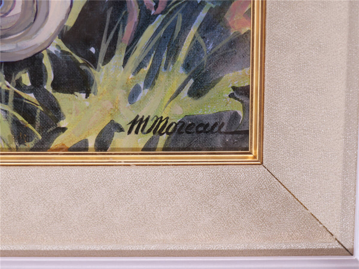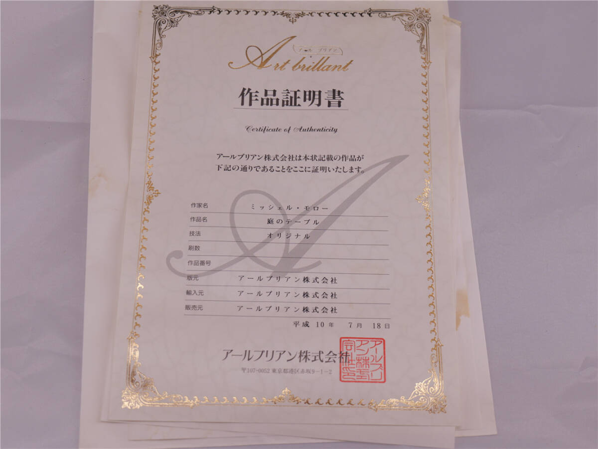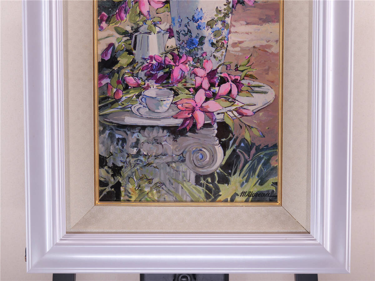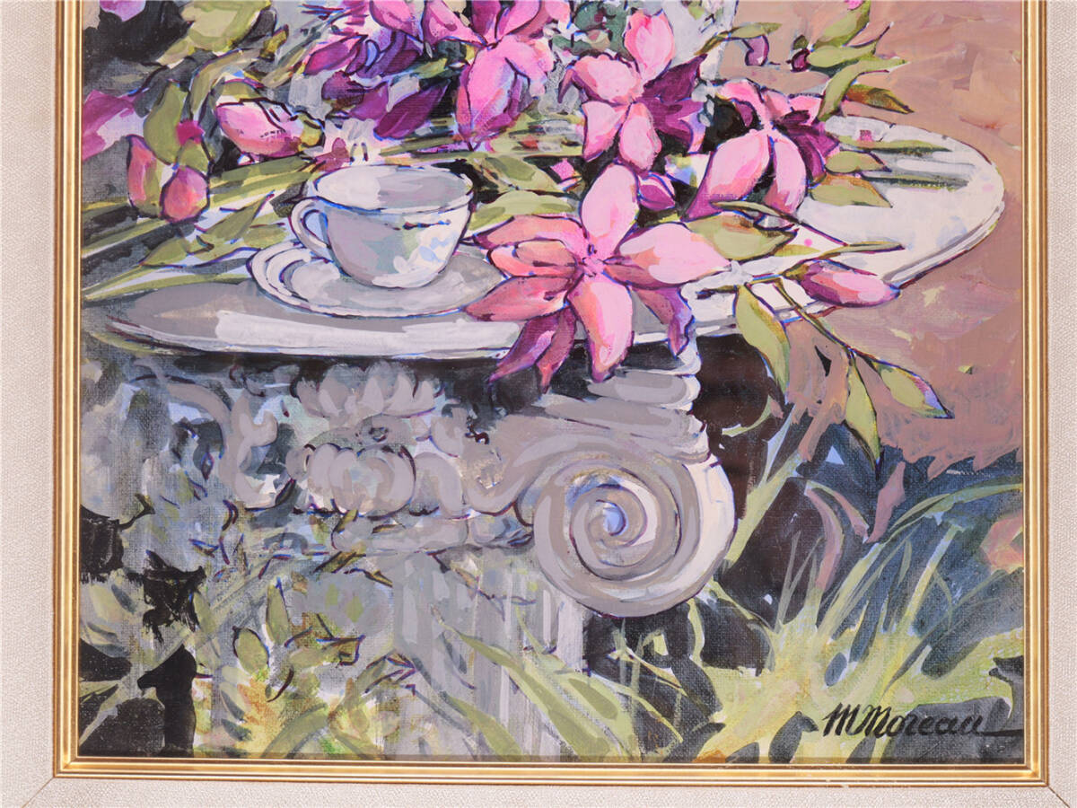 | ミッシェル・モロー「庭のテーブル」油彩6号 真作保証 額装 Michel Moreau フランスの画家 |
