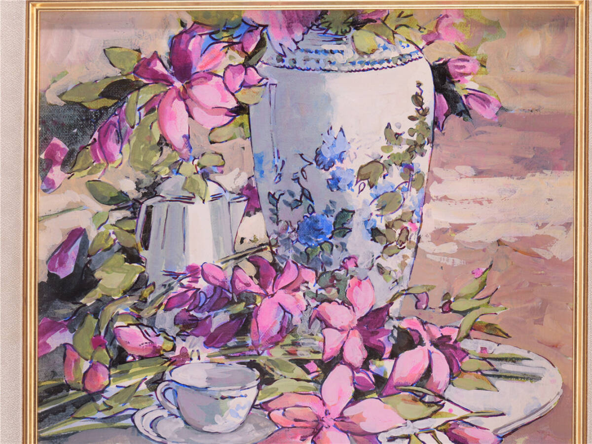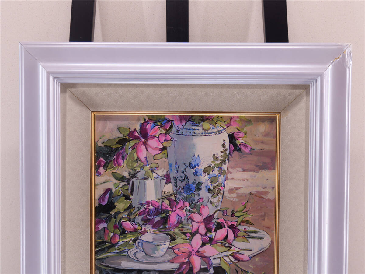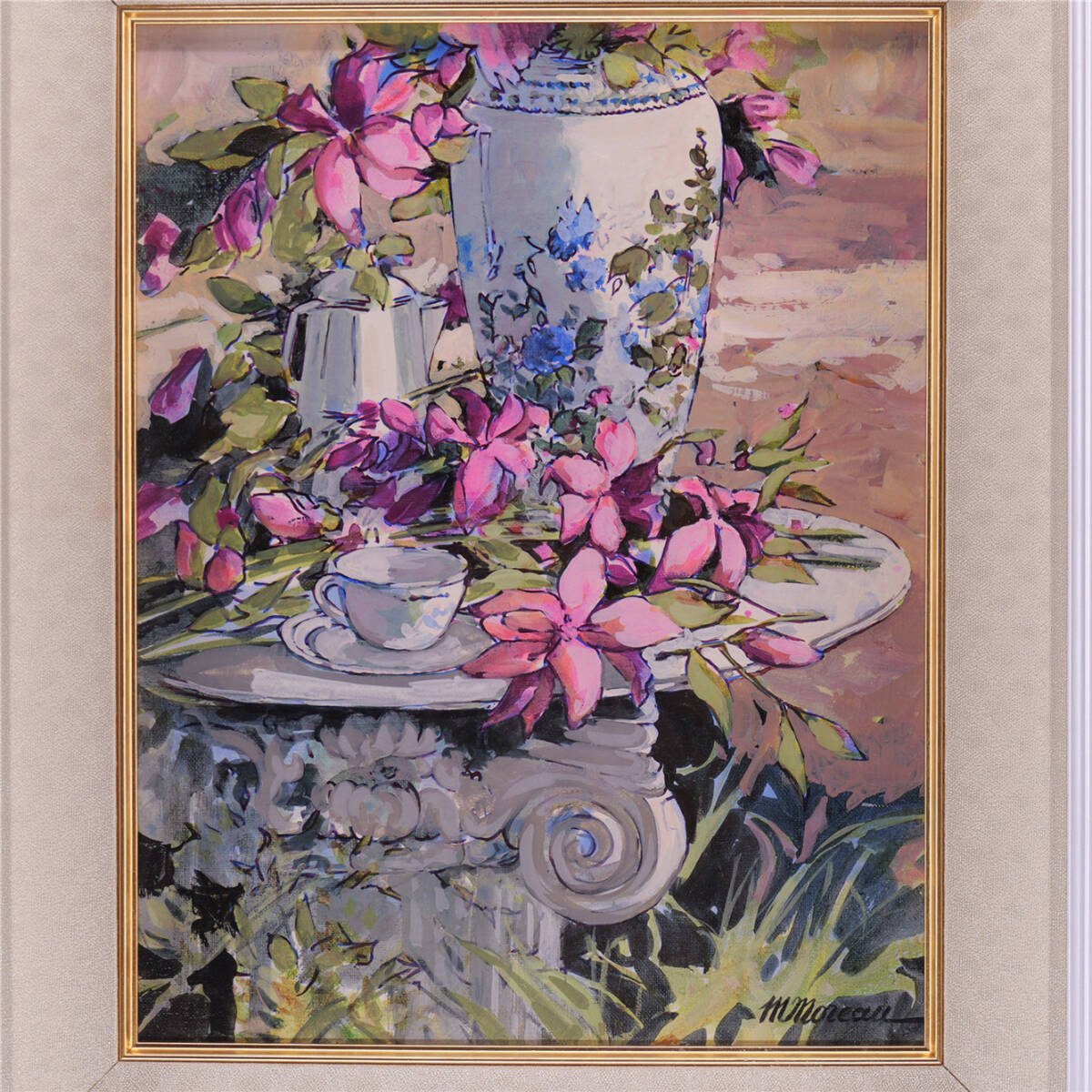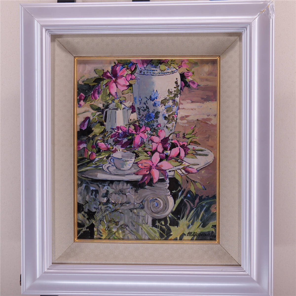 | ミッシェル・モロー「庭のテーブル」油彩6号 真作保証 額装 Michel Moreau フランスの画家 |