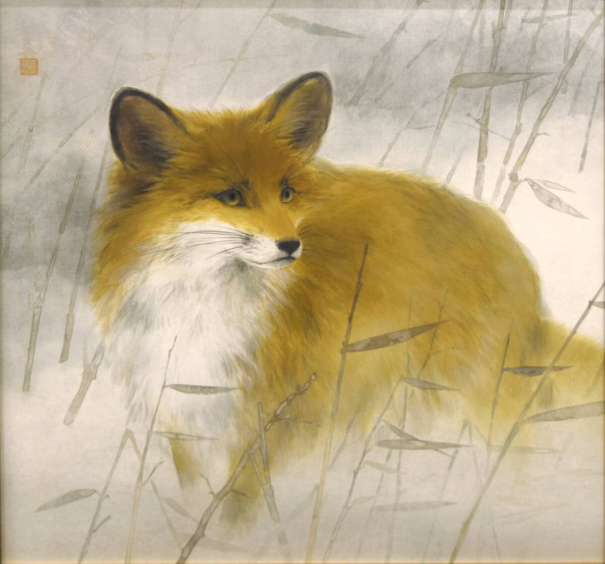 | 【真作保証】平子真理「雪野」日本画6号/共シール/日本美術院院友/狐/動物画 | |