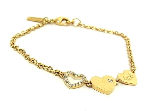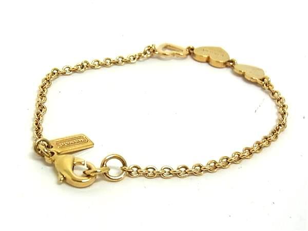 ■美品■ COACH コーチ ラインストーン 3連ハート ブレスレット アクセサリー レディース ゴールド系 DI9096