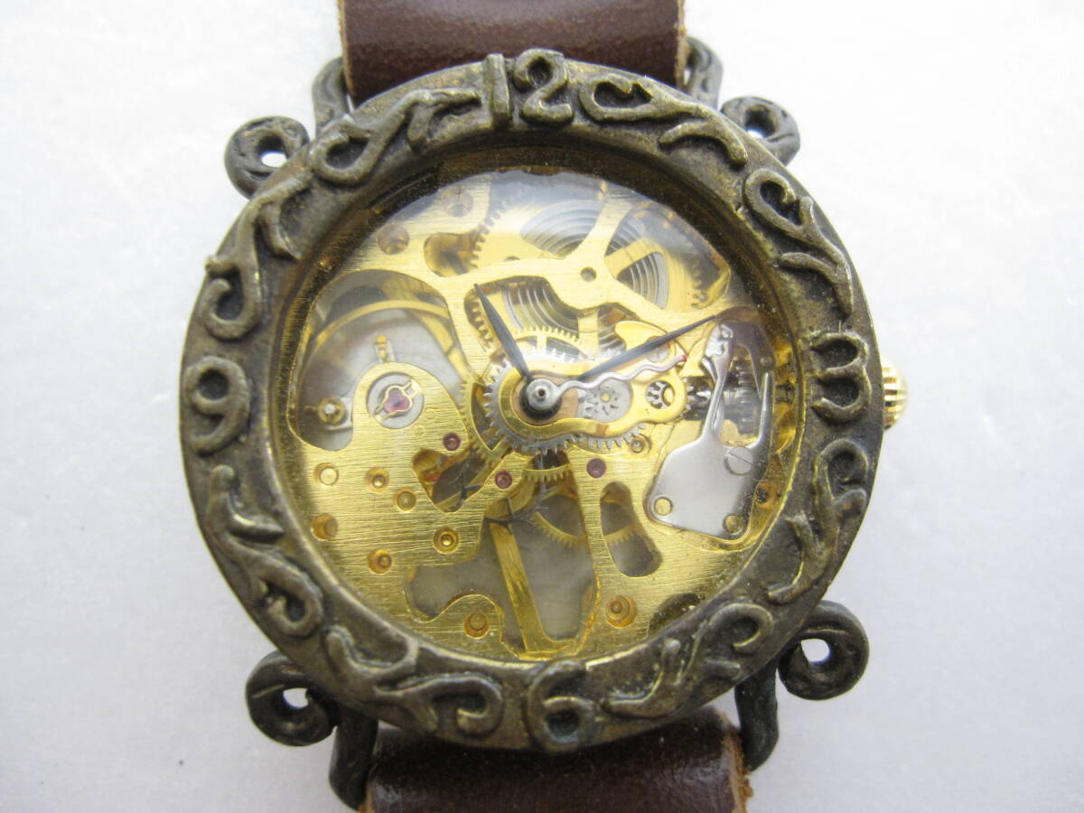 ☆【KH⑥-65】MU-RA/ムーラ? 3針 手巻 スケルトン ハンドメイドウォッチ? アンティーク調 動作品☆