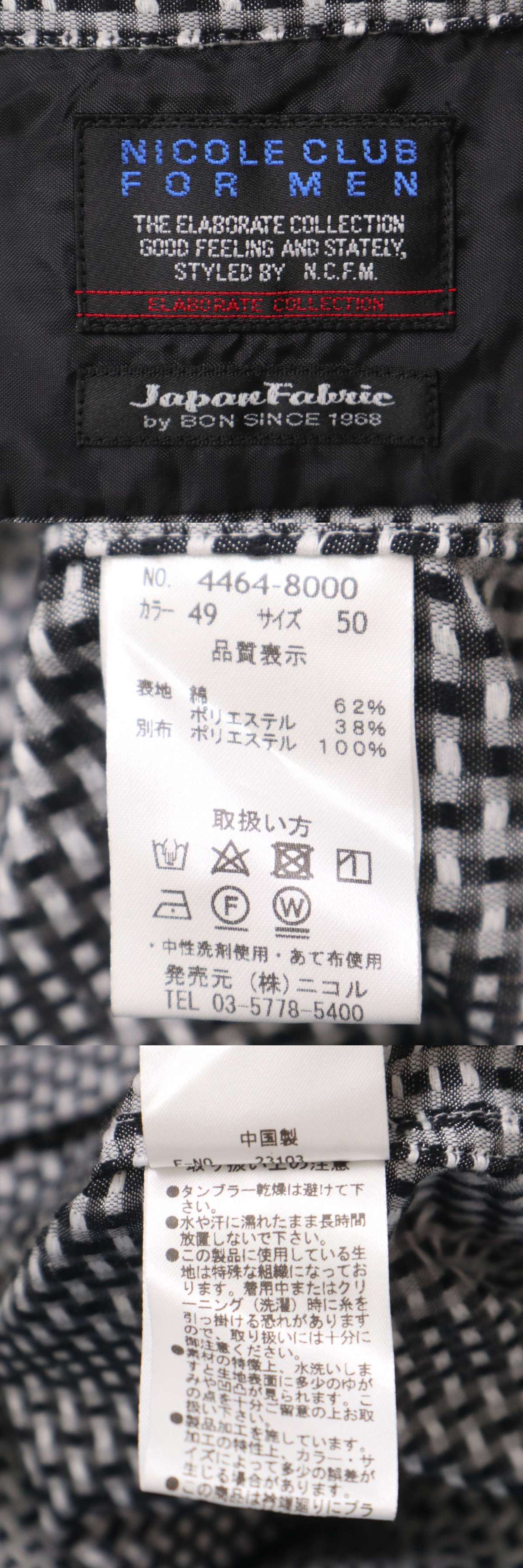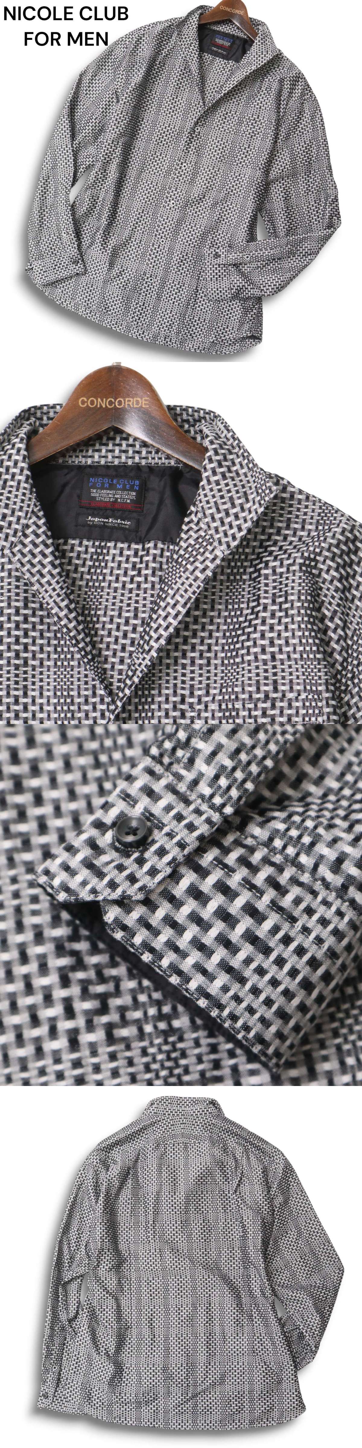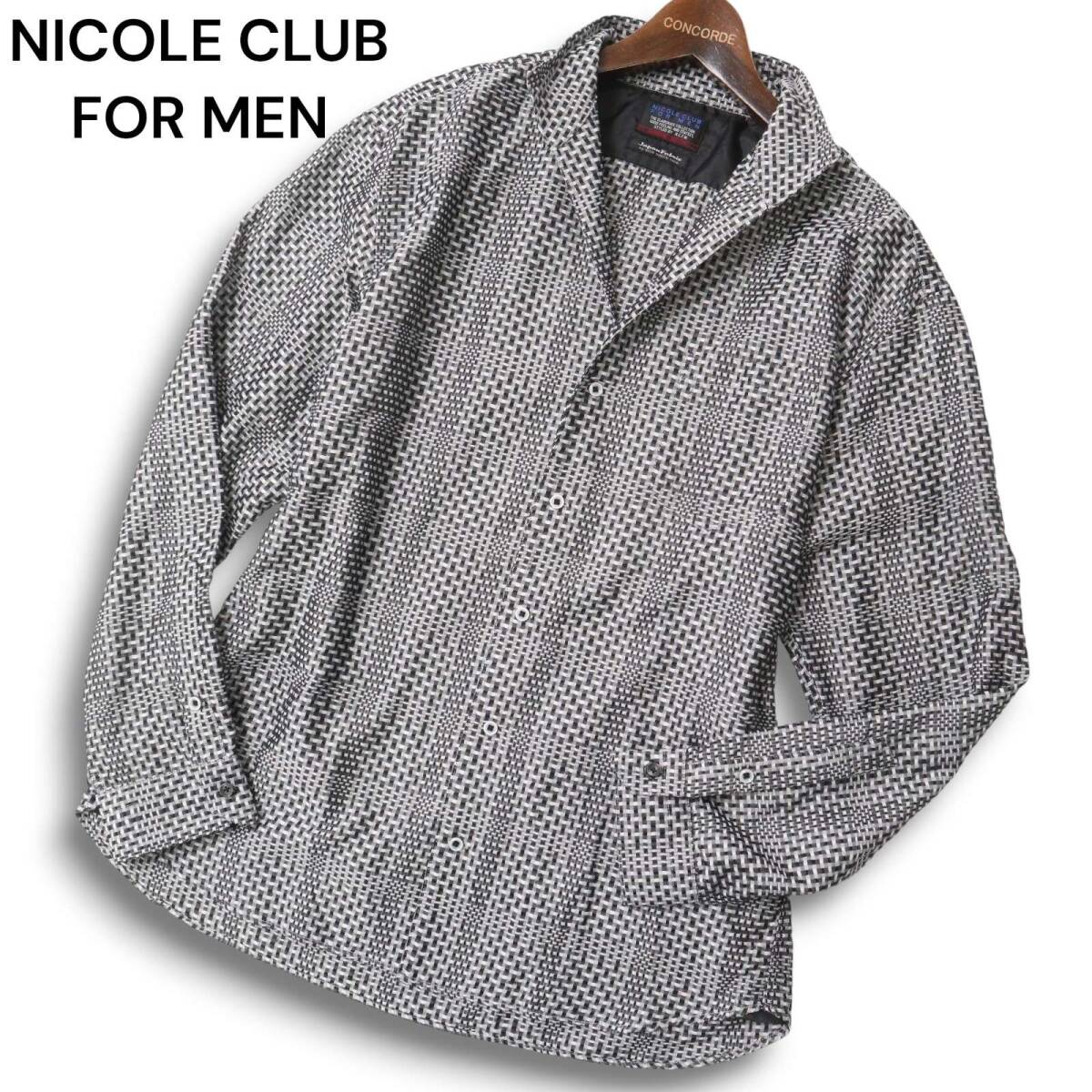24AW★ NICOLE CLUB FOR MEN ニコルクラブ フォーメン 長袖 ドビー チェック スタンドカラー シャツ Sz.50 メンズ 黒
