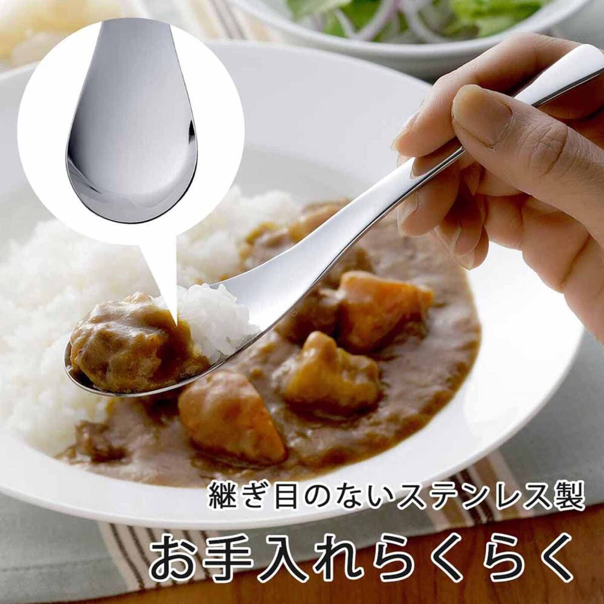 説明 やや小さめで持ちやすく食べやすいサイズ 深さもあるので一口食べるのに十分な量がすくえる 皿と持ち手間の角度が緩やかなので、口から抜く際にスプーンが口内に引っ掛かりにくいレンゲデザイン