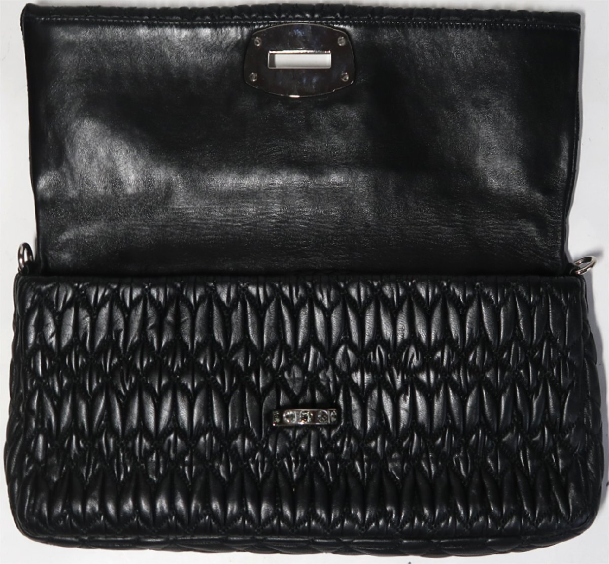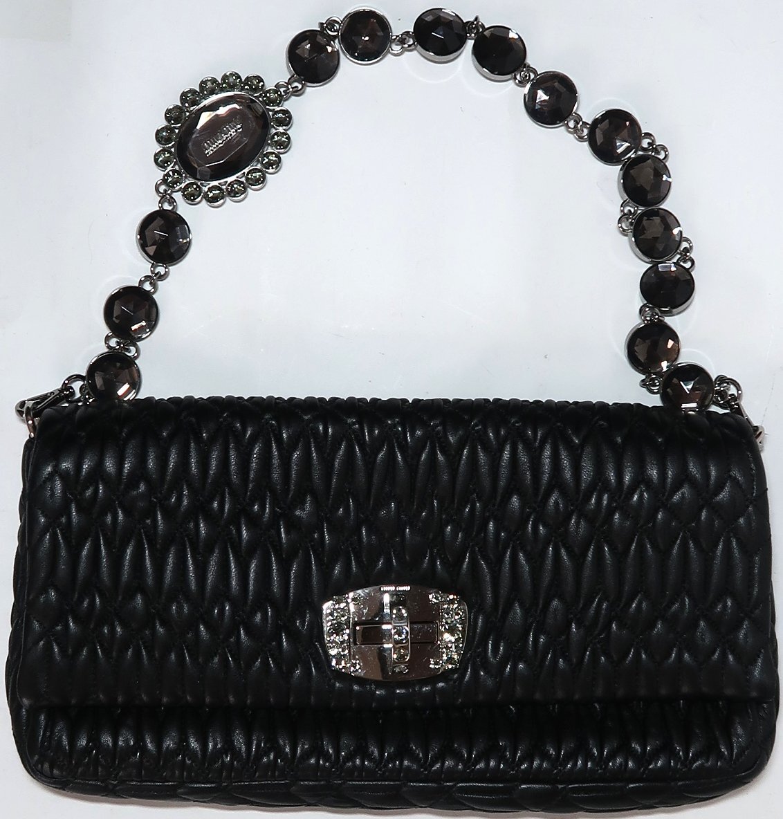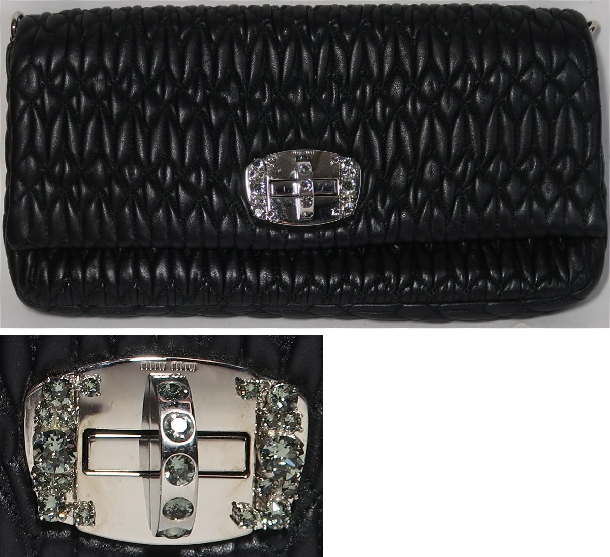 出品は画像の物が全てです。使用品ですのでレザーには多少の汚れや擦れはあります。メッキの金具は細かい擦れなどあります。ナッパーレザーの状態からほとんど使用はされていません。バックの内側はいい状態です。ショルダーストラップはレザーストラップとクリスタルチェーンの二つ付属しています。クリスタルチェーンに付いているアクリルストーンは浅い擦り傷が所々にあります。あとは画像をご覧ください。サイズはW28xH14xD4cmくらいです。クリスタルチェーンは60cmくらいです。レザーストラップの長さは57cmくらいです。