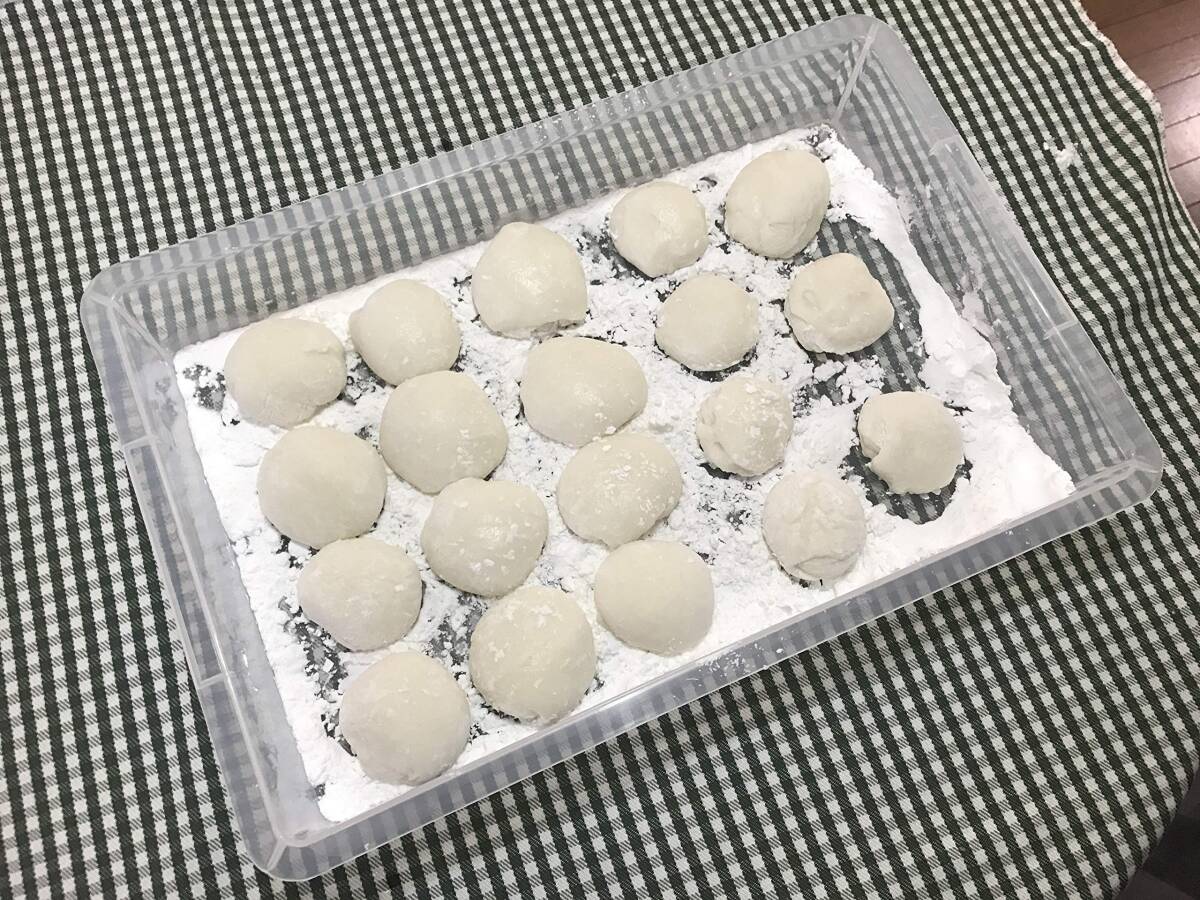 ・餅・パン・ケーキ・麺類などの一時保存や運搬に便利な平型フードコンテナ 小型のパンや小餅、製麺に適した浅型タイプ
