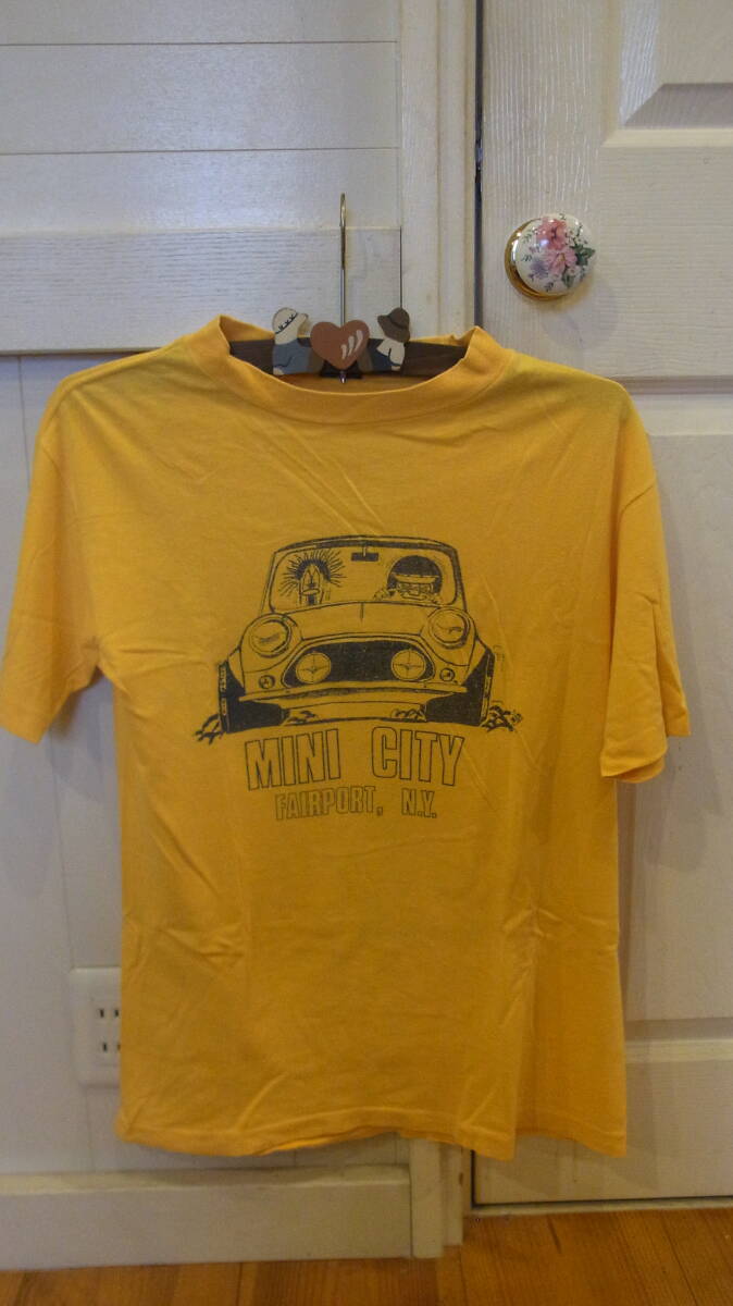1970年代 メイドインUSA ANVIL MINI CITY アメリカのミニクーパーショップのTシャツです。このTシャツのタグはかすれています。タグがはっきり写っている最後の画像はこのTシャツの物ではありませんが、このTシャツと同じタグになります。