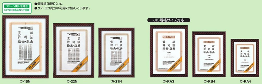 商品紹介 ●表装材にガラスを使用した賞状額縁です。 ●個装箱(紙製)入りです。 ●タテ、ヨコ両方の利用に対応しています。 原材料・成分 フレーム:R-PS、表面:ガラス(厚み:2mm)、裏板:MDF