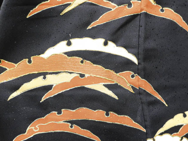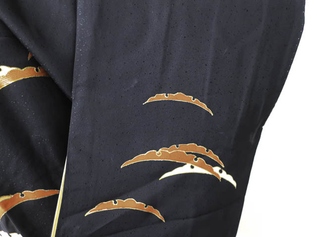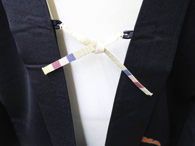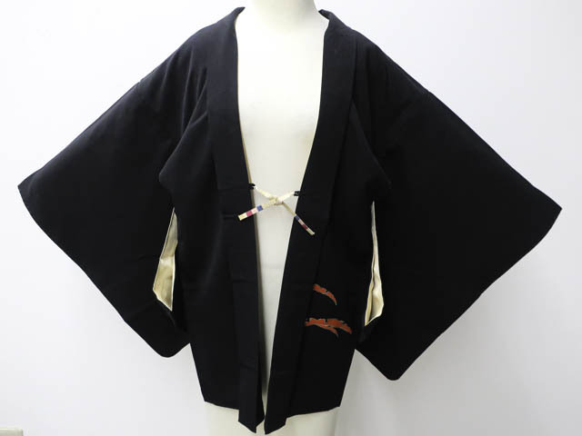 リサイクル商品のため、羽裏にしみがございます。 表所々に薄汚れがございますが着用可能なお品です。 地色は 黒 です。 1枚目の画像が近いお色かと思われます。 素材は正絹です。 |