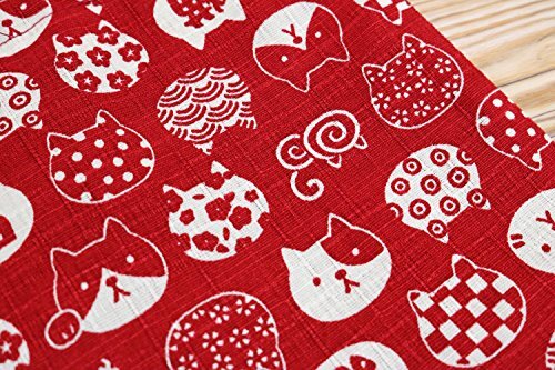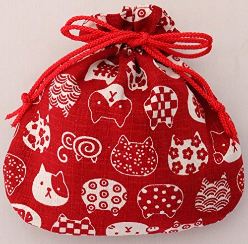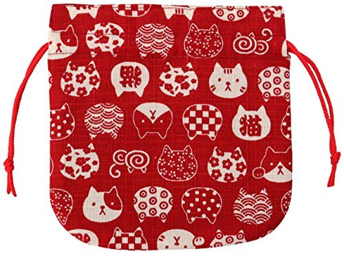 京佑 巾着 袋 小物入れ アクセサリー ミニ 猫 和柄 綿 日本製 にゃんこもん 赤 えんじ 16.5×17cm