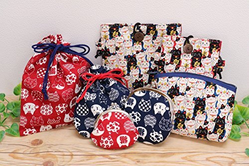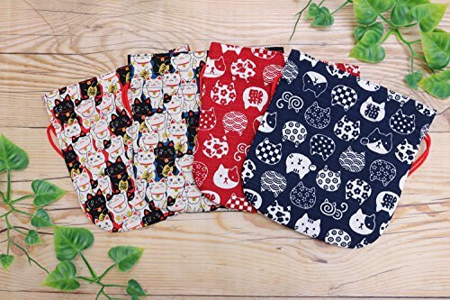 猫柄の小さいサイズの巾着袋 和風レトロな柄が可愛らしい カバンの中の小物を収納するのに便利 ミニタオルとティッシュが入るサイズ
