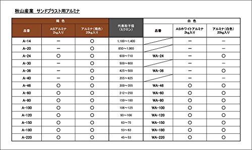 粒度:F60・ 粒度:F60 WA-60・・Style:粒度:F60・代表粒径:180~250ミクロン・色:白・材質:酸化アルミニウム97%以上シャープな粒子と高い硬度を持つ切削に非常に優れた研磨材 【用途】 サンドブラスト用研削剤 【特徴】 ・酸化被膜やスケールなどの除去、塗装剥離、下地処理に最適 ・ISO-F粒度規格に準拠しており、粒度バラつきが少ない仕様 ・不純物が少ない為、非常に精密な仕上がり面を得る事ができる