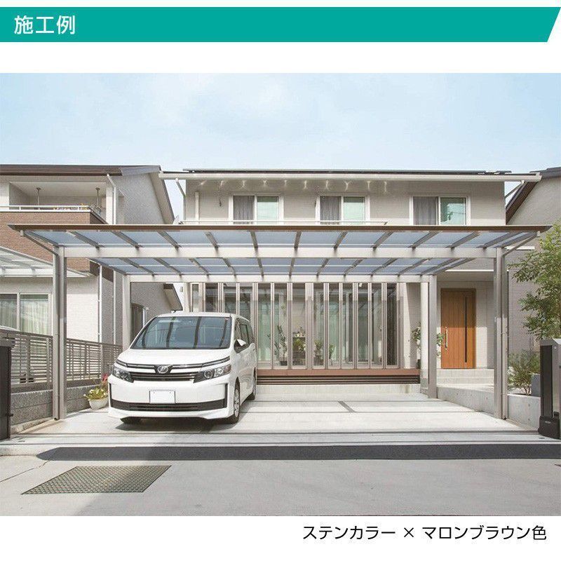 オプション | ※プルダウンでご選択頂く有料オプションです。 ・屋根枠を木調カラーに変更(セピアブラウン/マロンブラウン) ・ポリカ(熱線遮断/熱線吸収) ・ロング柱仕様に変更(4本一式) ・サイドパネル(H05/H10/H15/H20) ※カーポート本体の奥行とサイドパネルの奥行寸法は異なりますのでご注意ください。 カーポート本体が奥行50サイズの場合、サイドパネル奥行50サイズを使用した際は、 サイドパネルの寸法が少し小さくなります。 ・サイドパネル用台形パネル ※台形パネルを組み合わせて施工する場合、カーポート本体の高さをご確認ください。 カーポートが標準高の場合は、サイドパネルの高さはH15サイズまでです。 4°勾配以上の場合は、現場で部材を加工して取り付けてください。 |