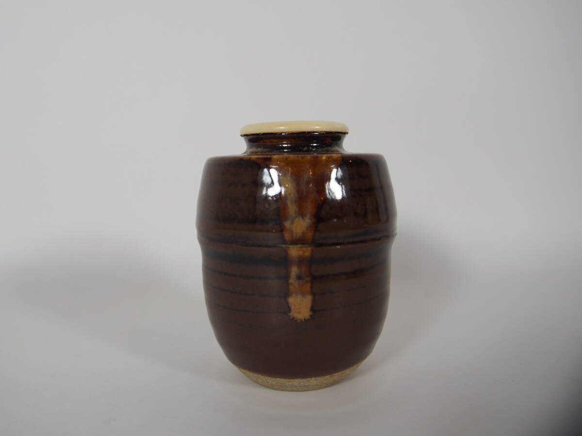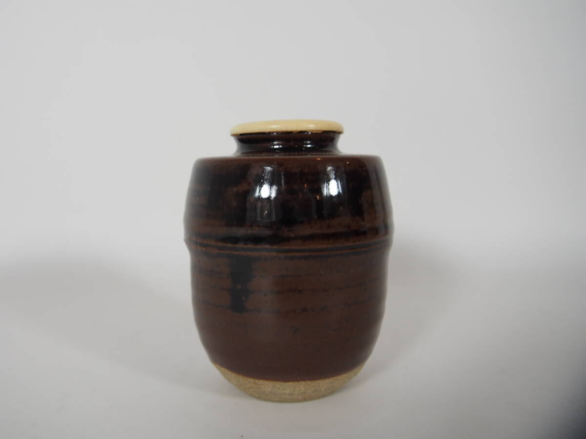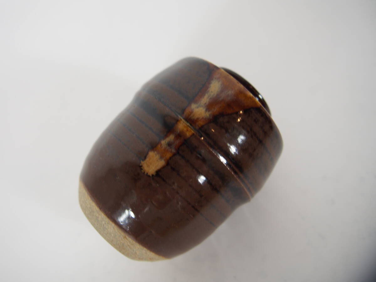 淡海ぜぜ 岩崎新定 陽炎園 膳所焼 夜鶴写 茶入 在銘 ぜぜ 仕服付 薩摩間道 共箱 茶道具 N-112