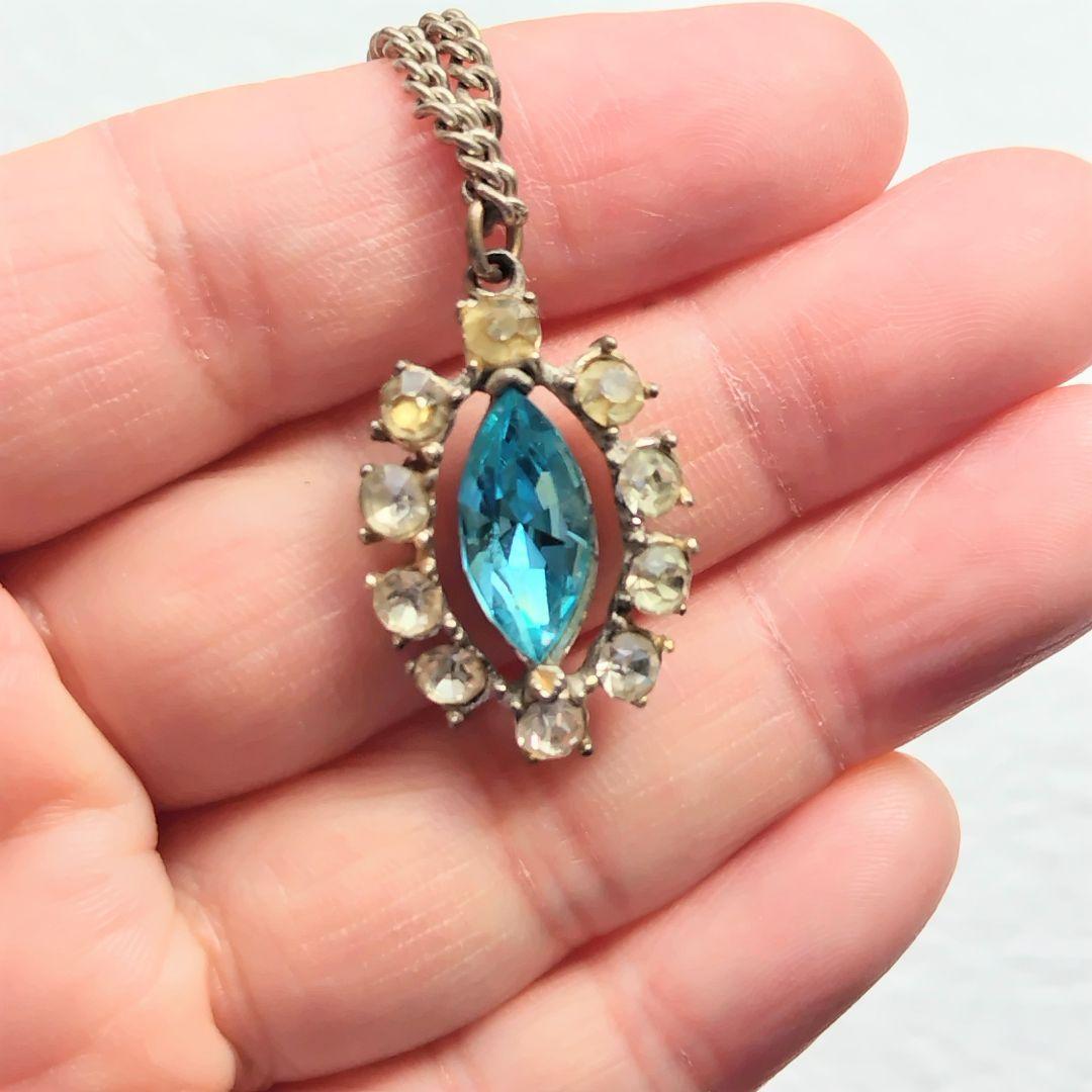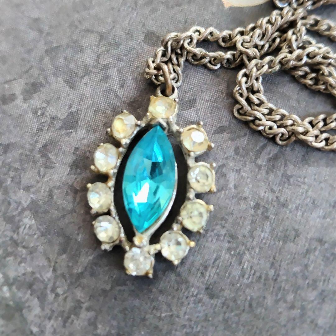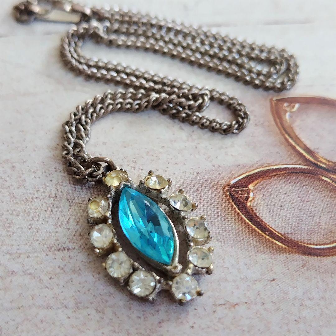 イギリス製 英国ヴィンテージ マーキスカットブルークリスタルとラインストーンのネックレス