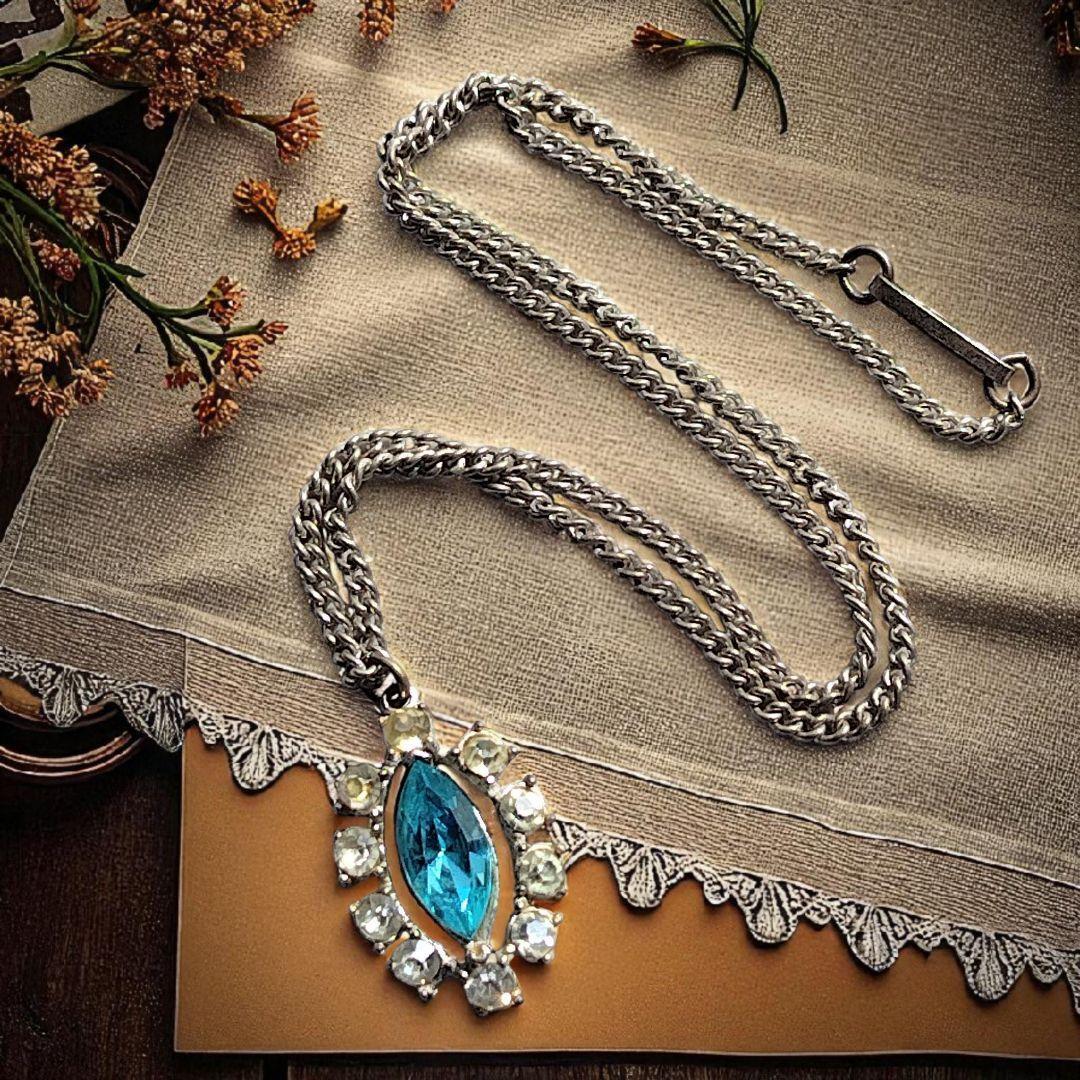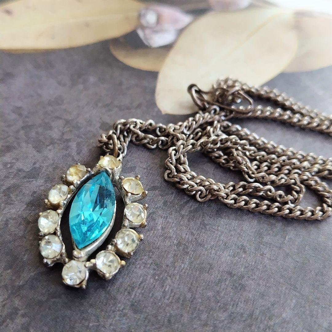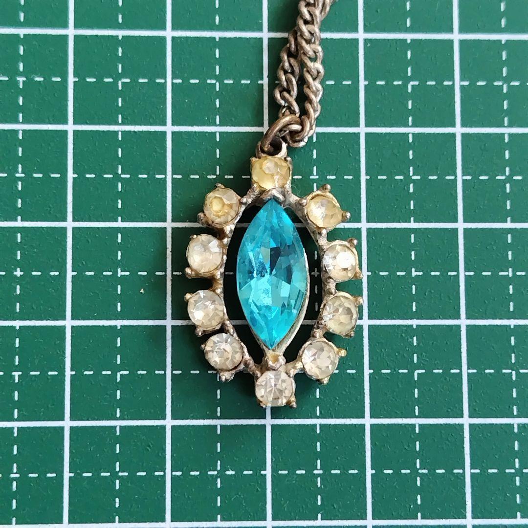 イギリス製 英国ヴィンテージ マーキスカットブルークリスタルとラインストーンのネックレス
