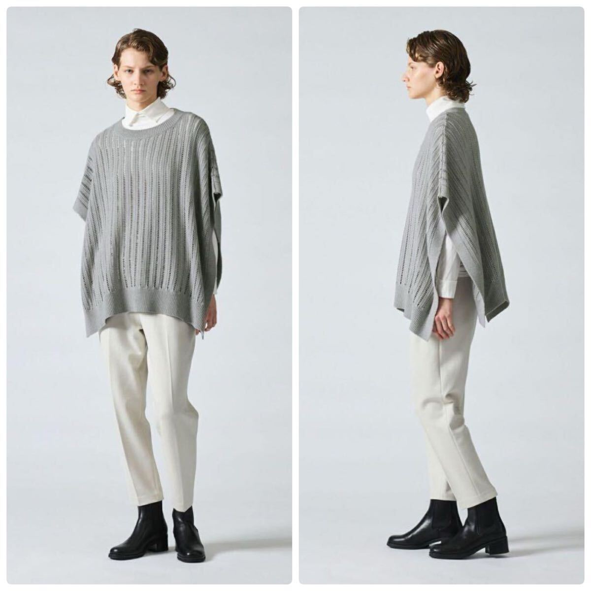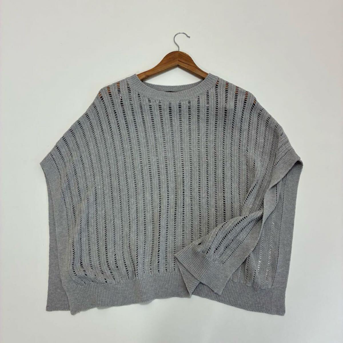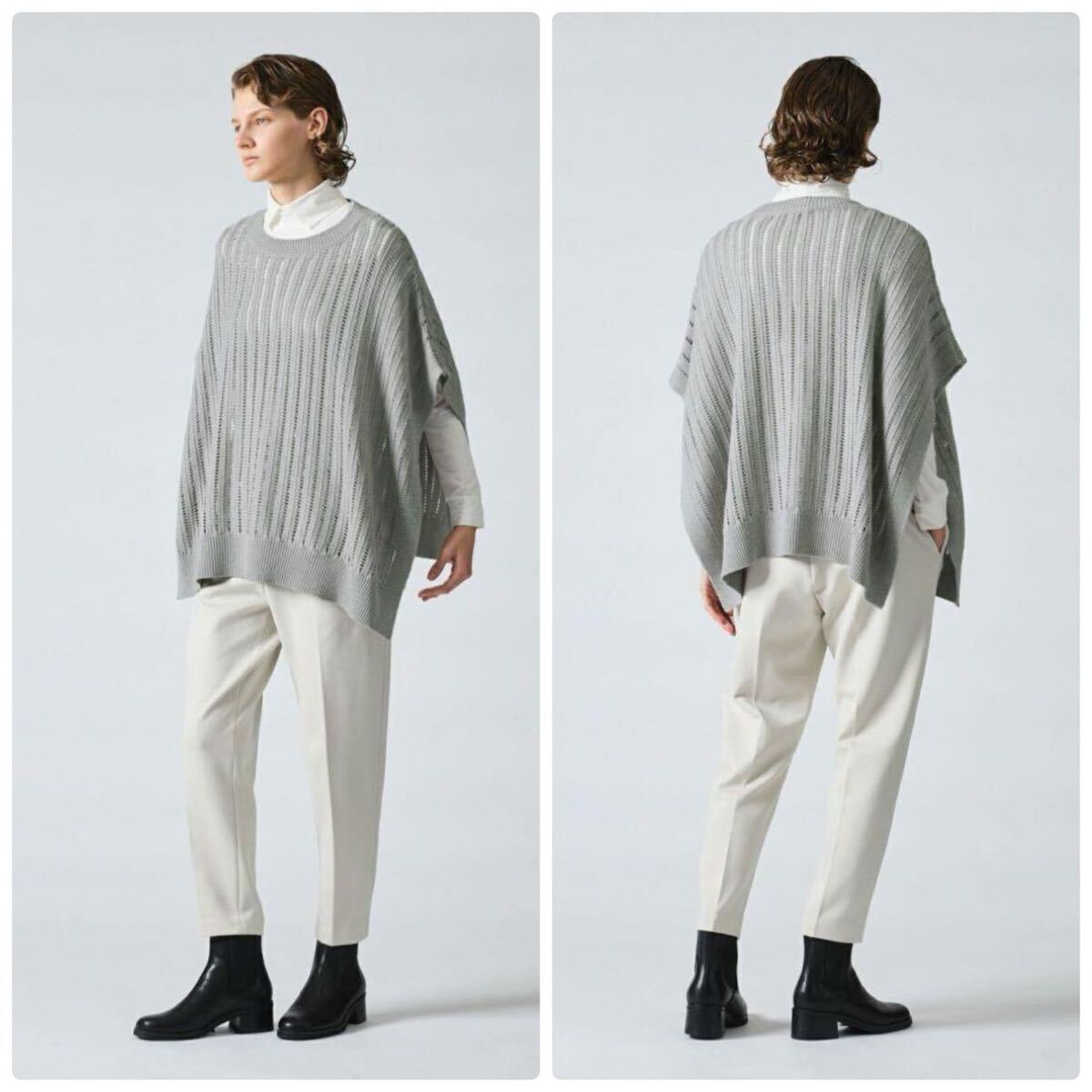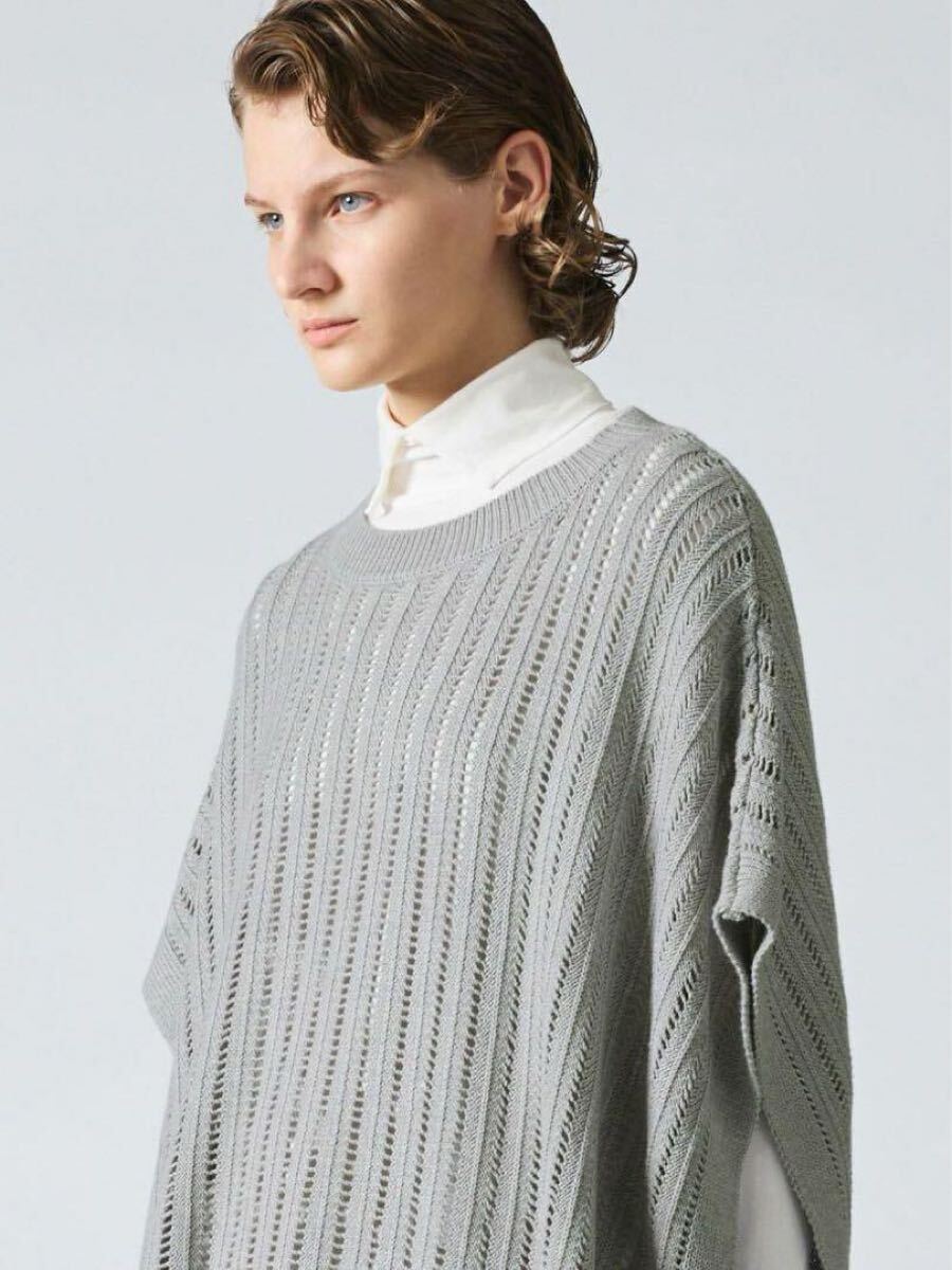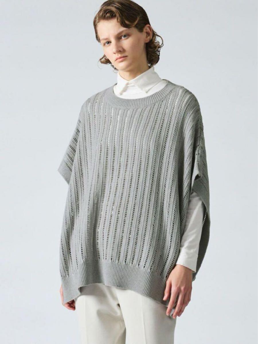 ストライプイメージの柄編みニットを使用したワイドケーププルオーバーです。