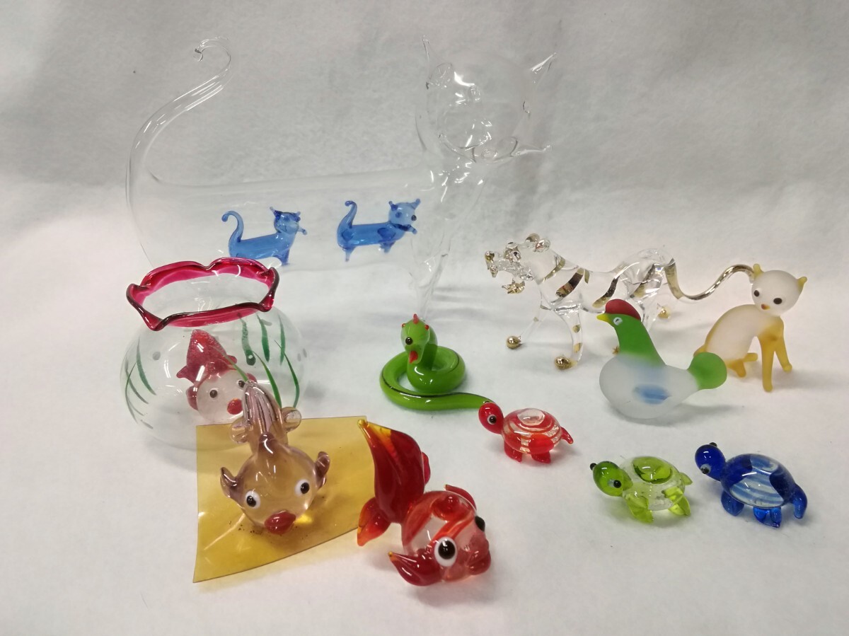 ミニチュア ガラス細工 動物 金魚 カメ ネコ へび 虎 他 11点まとめて インテリア 置物