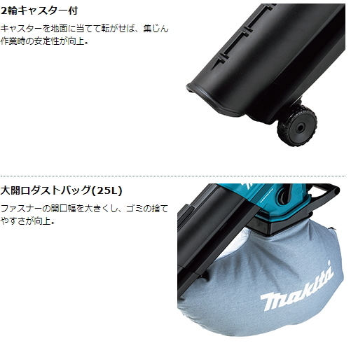 キャスターを地面に当てて転がせば、集じん作業時の安定性が向上。