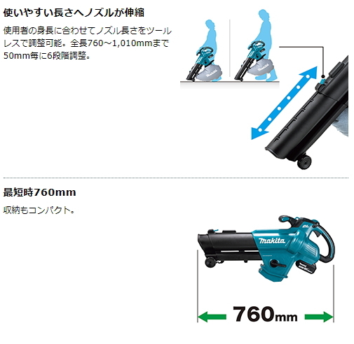 使用者の身長に合わせてノズル長さをツールレスで調整可能。