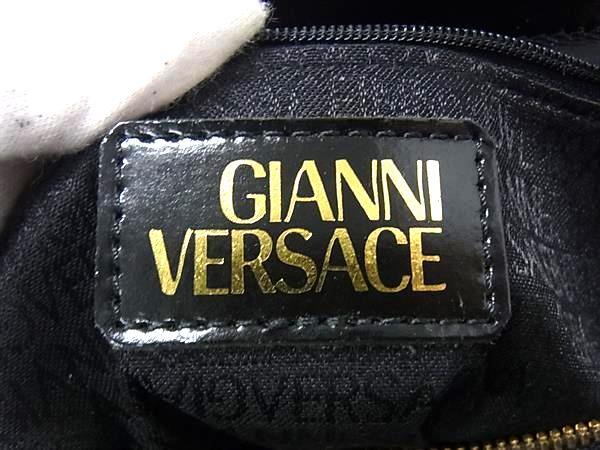 1円 ■美品■ GIANNI VERSACE ジャンニ ヴェルサーチ ヴィンテージ サンバースト レザー ハンドバッグ トートバッグ ブラック系 FU3254