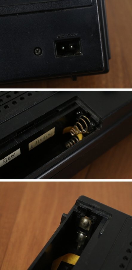 傷汚れ、多少の割れ、側面下部に多少の割れ、アンテナに多少の曲がり、アンテナ置き部のプラに欠損と思います、電池ボックスに腐食あり。
