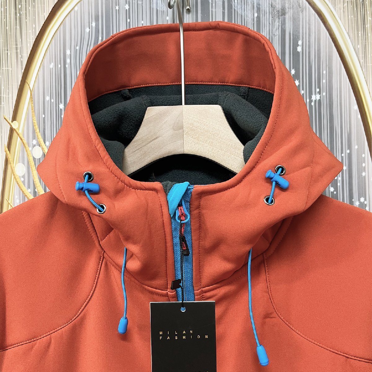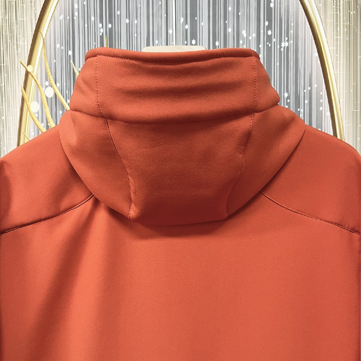 カラーはどんなシーンでも使える定番のオレンジ、キレイめからカジュアルまで幅広いスタイリングをお楽しみいただけます。スタンドカラーとフード付きのデザインを採用して、フードは取り外し不可となり、中にはドローコード付き、調整でき、防寒対策効果が良い!!