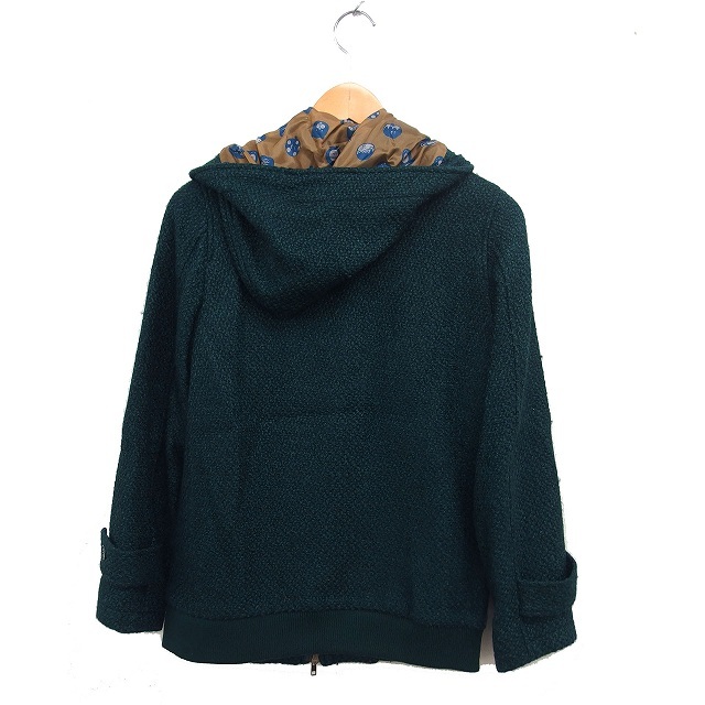 ネネット Ne-net ダッフルコート ショート フード ウール混 リブ ジップアップ 2 ディープグリーン /NT16 レディース