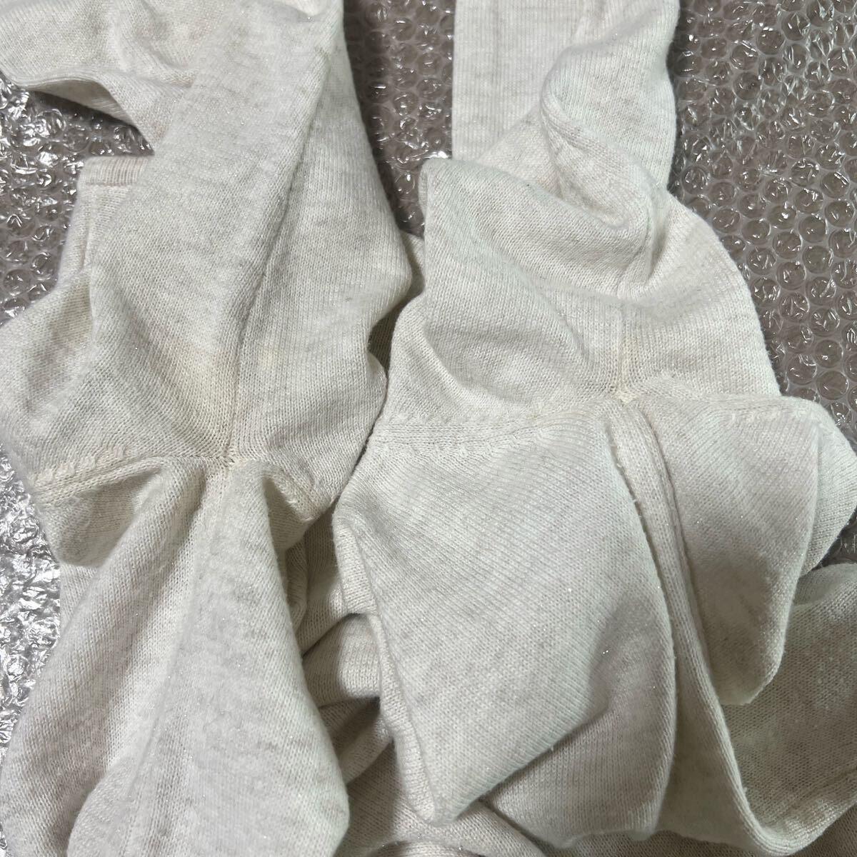 カットソー セーター ニット プル シンプル 定番 長袖カットソー カジュアル オフィス ワーク デート 所々にラメが入っていてキラキラしています。キラキラしすぎずに上品なラメとなります。素材は綿(コットン) 49%アクリル49%ポリエステル2%となります。コットン素材が入っているため着心地が良いと思います。