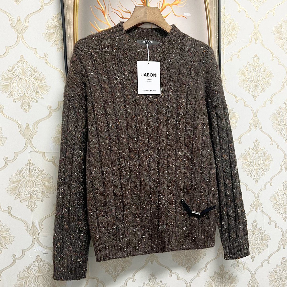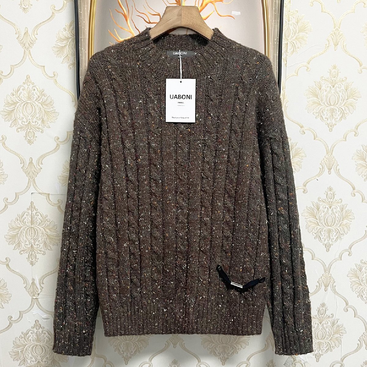 個性EU製&定価4万◆UABONI*Paris*セーター*ユアボニ*パリ発◆ウール混 ニット 保温 厚手 総柄 ゆったり 人気 トップス お出かけ 秋冬 L