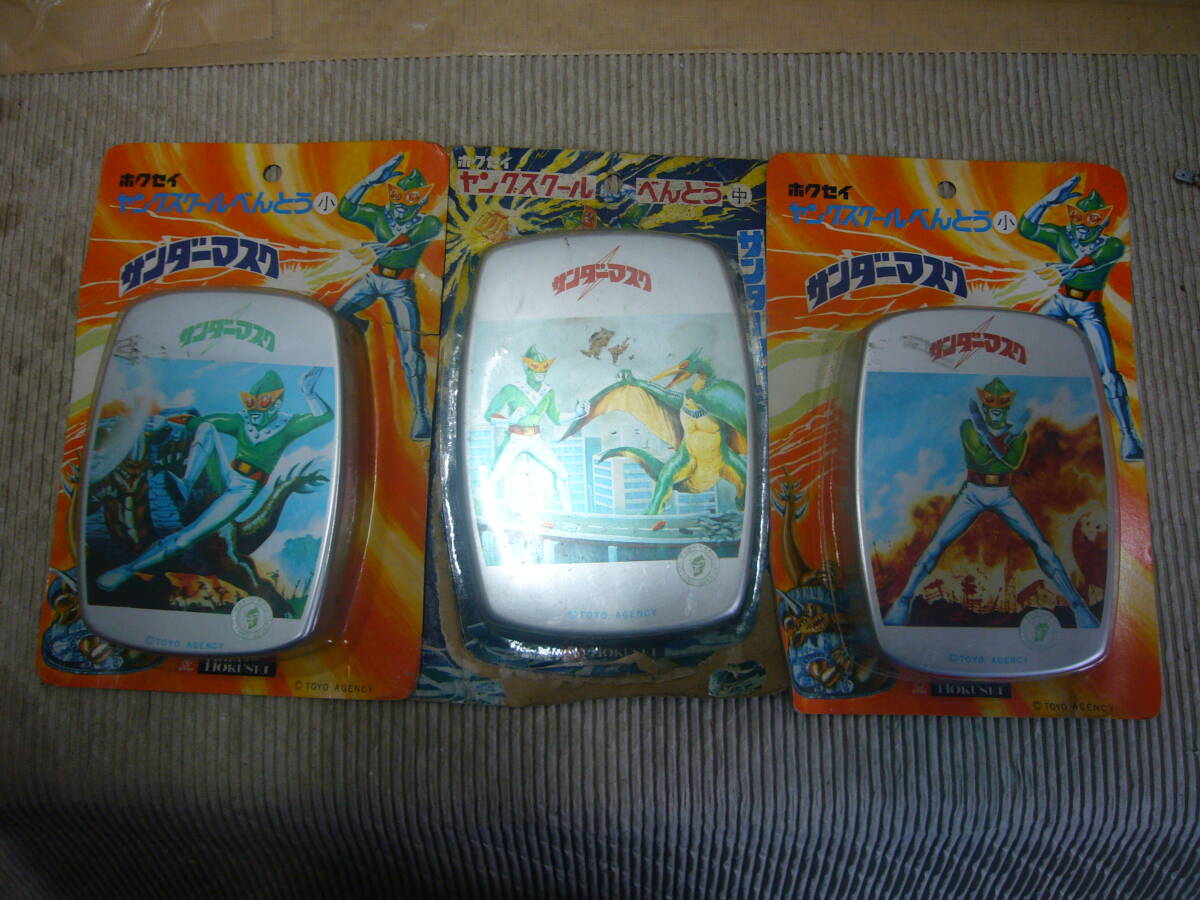 使用状況:ホクセイ ヤングスクール べんとう 「サンダーマスク」 小 2箱 中 1箱 合わせて3箱 未使用品 昭和レトロ/当時物