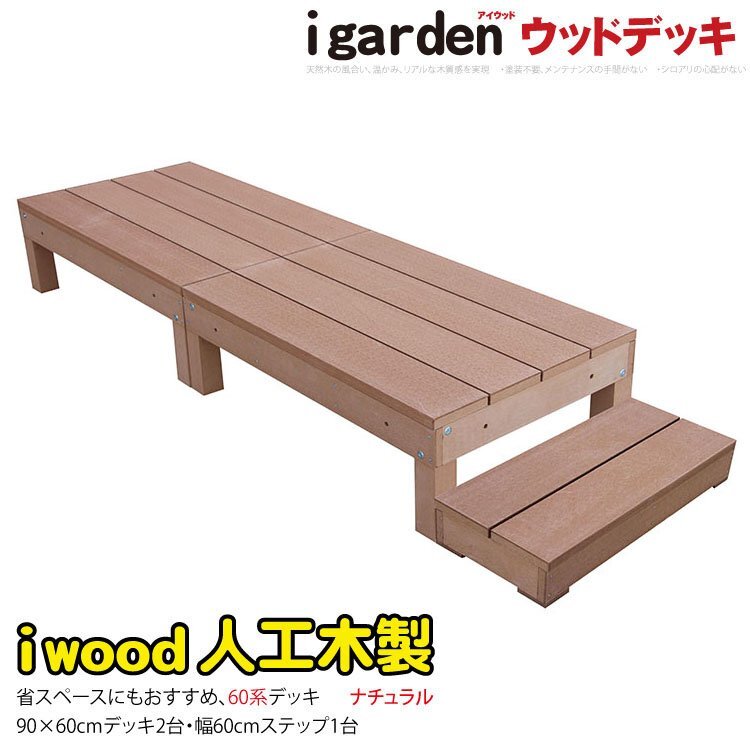 igarden 60系 アイウッドデッキ 3点セット(デッキ2・60ステップ1)ナチュラル 樹脂製
