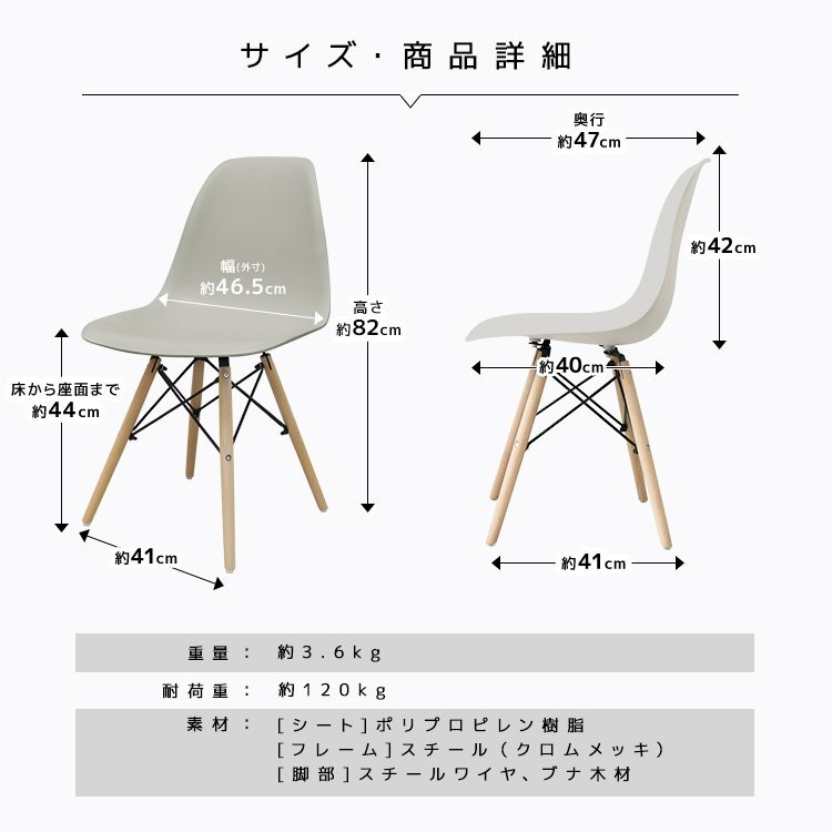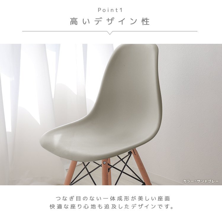 時代を問わない洗練されたデザイナーズチェア。 20世紀を代表するプロダクトデザイナー・イームズ夫妻の最高傑作の ひとつとして名高いイームズチェアのリプロダクト製品です。 スタイリッシュ&機能性を備えたドゥエルレッグ。 脚部先端にはプラスチック製の保護パーツ付きで床の傷を防ぎます。 オフィスやリビング、ダイニングなどシチュエーションを選ばず 空間になじむオールマイティなデザイン。 背板と座板が一体型の形状となったシェル型デザインで 長時間座っていても疲れにくい構造となっています。 【商品仕様】 商品名:Eames Chair(イームズチェア) デザイナー:チャールズ&レイ・イームズ/Charles & Ray Eames カラー:ミルクティスモア サイズ(約):W46.5cm×D47cm×H82cm 座面サイズ(約):W46.5cm×D40cm×H42cm 重量(約):3.6kg 耐荷重(約):120kg 材質:ポリプロピレン樹脂、スチール、ブナ木材 【商品内容】 座面 ×1、脚 ×1、固定用ネジ ×4、ワッシャー ×4、六角レンチ ×1 ■注意事項■ ・組立て後、脚にガタツキが生じた場合は通常使用している間に馴染んでいきますので、ご安心下さい。 ・商品はリプロダクト品となります。 ・商品は、モニターによって色合いが異なって見える場合があります。 ・仕様・デザインは改良のため予告なく変更することがあります。 イームズテーブルはこちら→ |