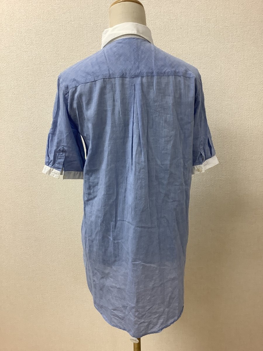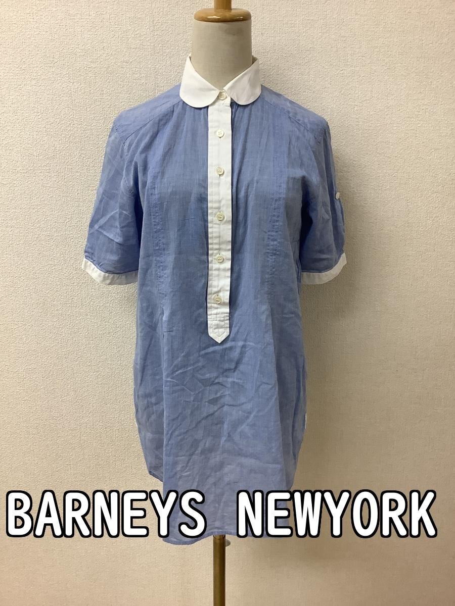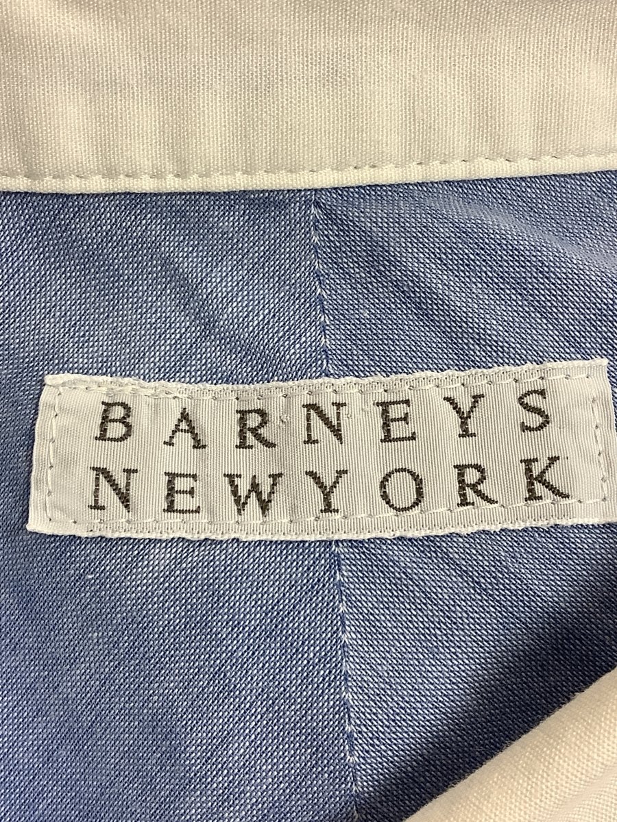 | 管理番号:10^138847 バーニーズ ニューヨーク (BARNEYS NEWYORK) 薄ブルーシャツ ロング丈 えりや袖口白 表示サイズ:なし 実寸(参考)