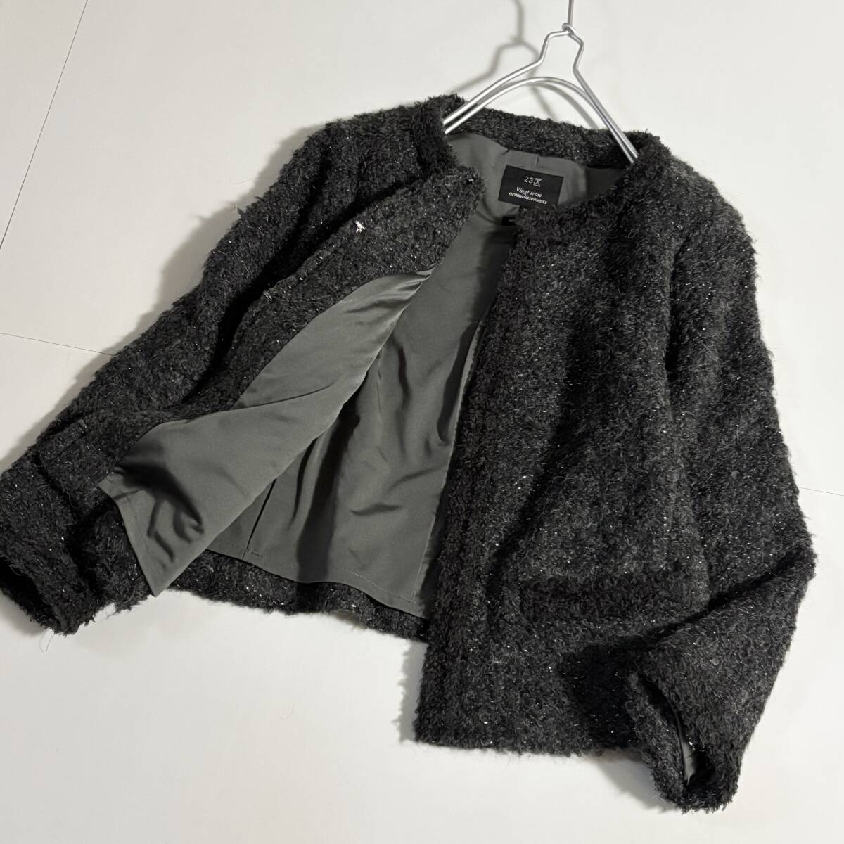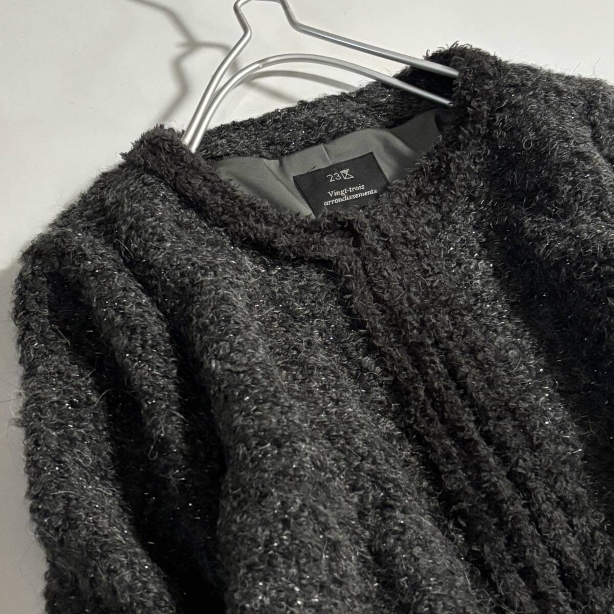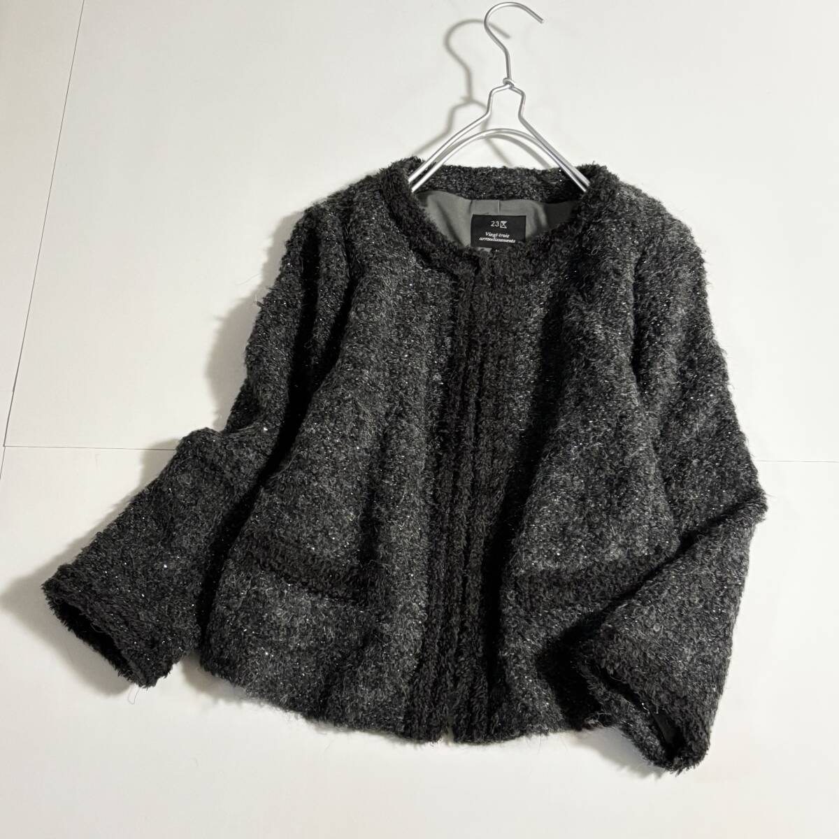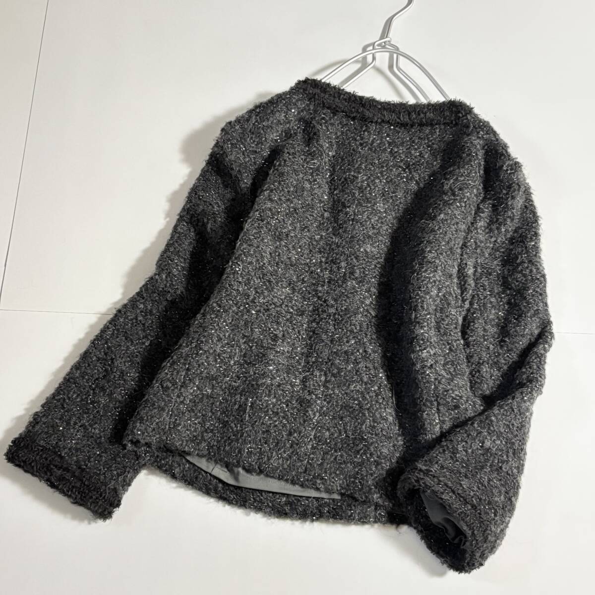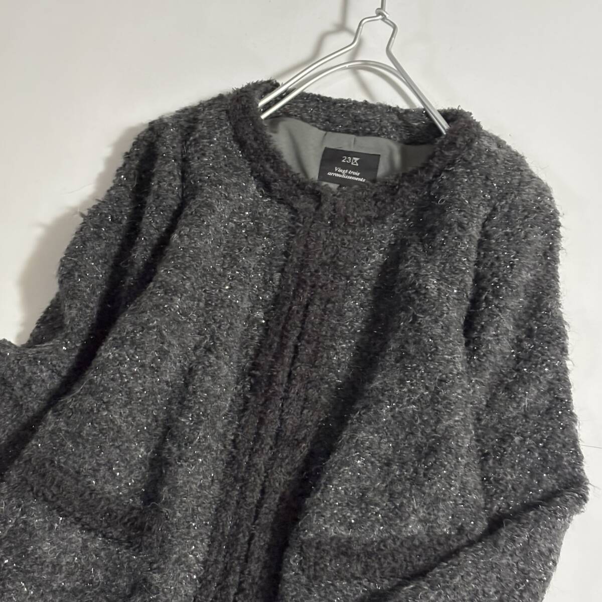 オンワード樫山 23区 大きいサイズ44 // 羊毛・アルパカミックス グレー系ラメ入り 起毛 ジャケット ⑥