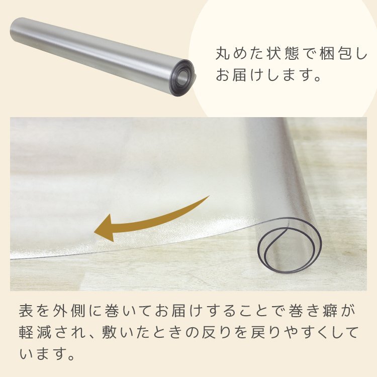 ダイニングテーブルを汚れや傷から守りたい! でも、汚れたマットをこまめに洗うのはめんどくさい…。 マットが滑りやすくてテーブルを拭くときぐちゃっと丸まってしまう…。 そんなお悩みには、お洗濯不要!汚れやキズから守る、ダイニングテーブルマットがオススメです。 ■汚れ・水シミから床を守る 撥水性のあるPVC素材を使用してるので、汚れやシミに強く、 食べ物や飲み物をこぼしてもサッと拭くだけ!お手入れも簡単です。 抗菌・防カビ加工で、よりクリーンに。 ■傷や衝撃をガード 透明だから、インテリアの邪魔をしない! テーブルの上に敷くだけで、落下物による凹み等によるテーブルへのダメージを防ぎます。 ■サラサラの感触でベタつかない エンボス加工を施しているので、べたつきを感じさせないサラサラの手触りです。 マットな質感で、フロアになじみます。 ■ピタッとズレない快適設計 角丸設計でめくれにくく、裏面がテーブルにピタッと密着してズレを防止。 ■カット自由自在! お好みのサイズにカットできるので、キッチンフロアマットや家具の下に、 学習机 デスクマット、子供の遊び場やペットの床保護マットなど、自由自在にアレンジできます。 【商品仕様】 ・カラー:クリア ・サイズ:(約)80×80cm ・厚み:(約)1.5mm ・素材:軟質PVC ・使用温度:(約)-20℃から50℃ 【注意事項】 ・伸縮性のある素材のため、サイズに多少の誤差が生じる場合があります。 ・お手入れは薄めた中性洗剤を湿らした布につけ、固く絞って拭いた後、水分が残らないように乾いた布で乾拭きしてください。 ・日の当たる所で使用しないでください。日焼けで硬化する場合があります。 ・商品は、モニターによって色合いが異なって見える場合があります。 ・仕様・デザインは改良のため予告なく変更することがあります。 |