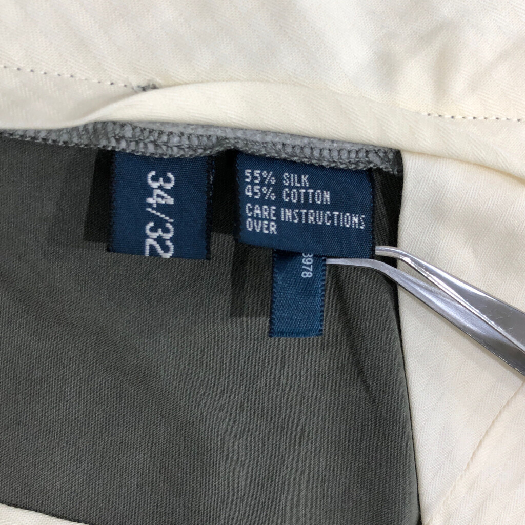 【商品管理番号】 V0830 【ブランド】 Polo by Ralph Lauren/ポロ ラルフローレン 【サイズ】 W34 L32 【実寸サイズ】 ウエスト:約88cm 股上:約26cm 股下:約80cm わたり幅:約34cm 裾幅:約22cm 【主な素材】 表地 : シルク 【色】 グレー 【仕様】 ポロチノ スラックスパンツ 【状態】 汚れ:もも 特記事項:色褪せ |