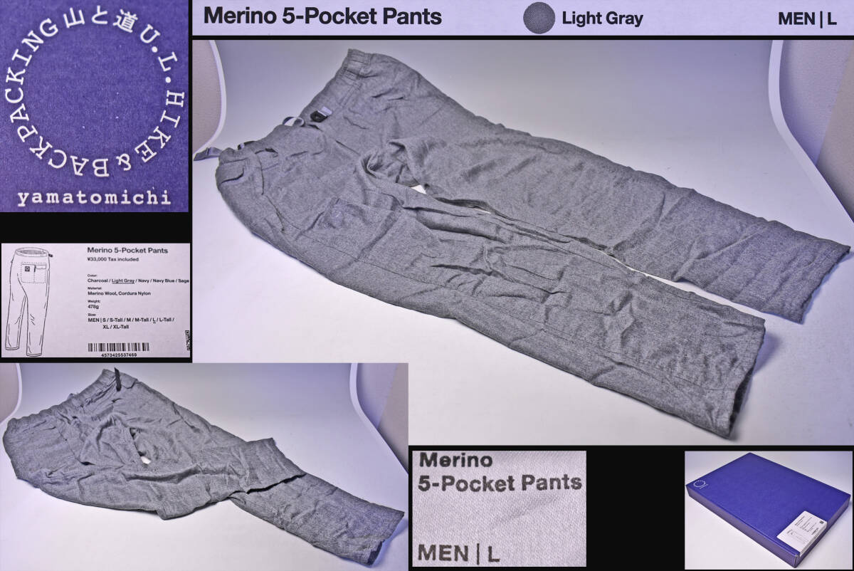 山と道 ★ yama to michi ★ Merino 5-Pocket Pants ★ Lサイズ ★ ライトグレー ★ 定価 33,000円 ★ メリノ 5ポケット パンツ ★ 中古品