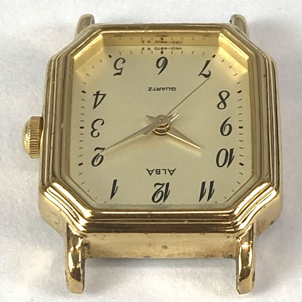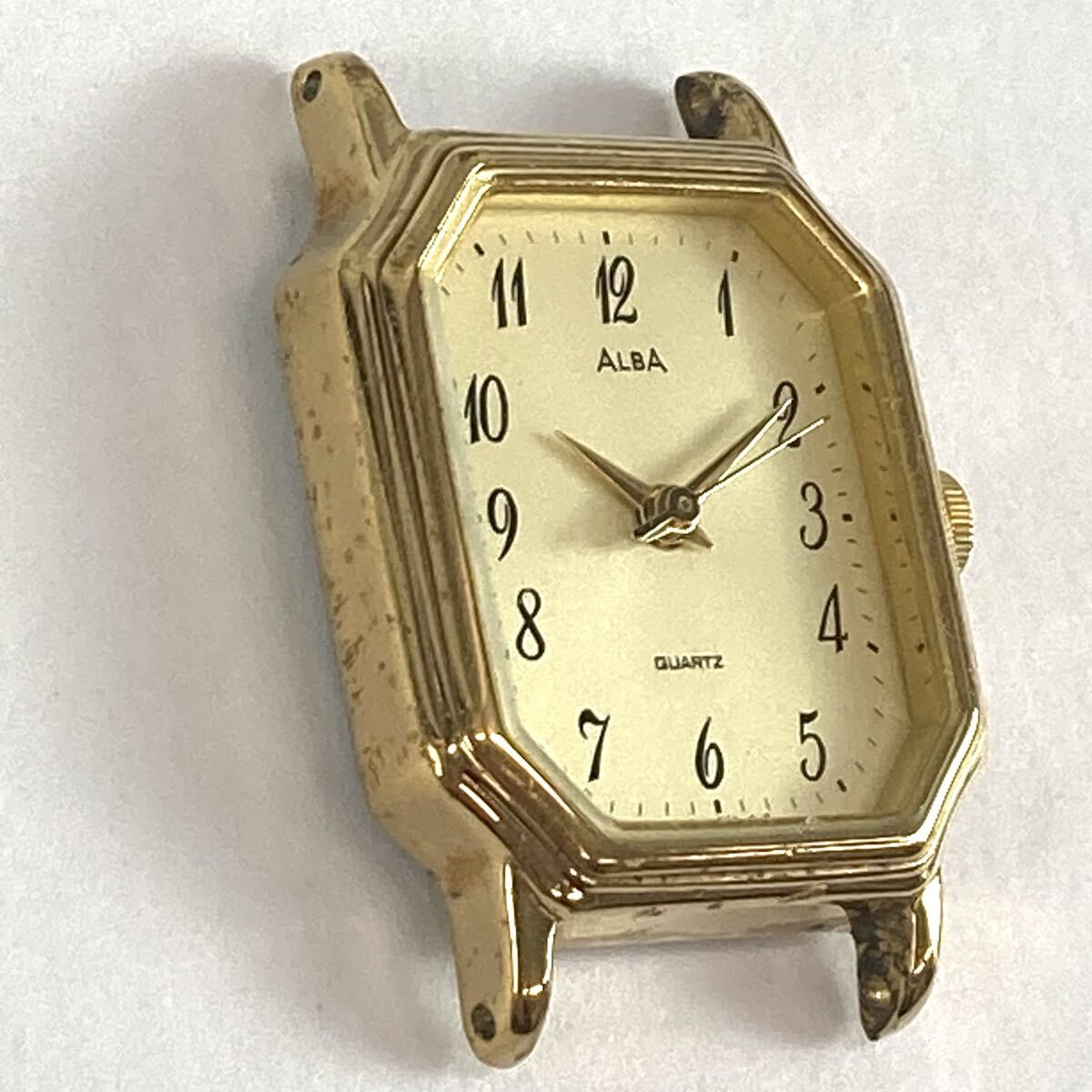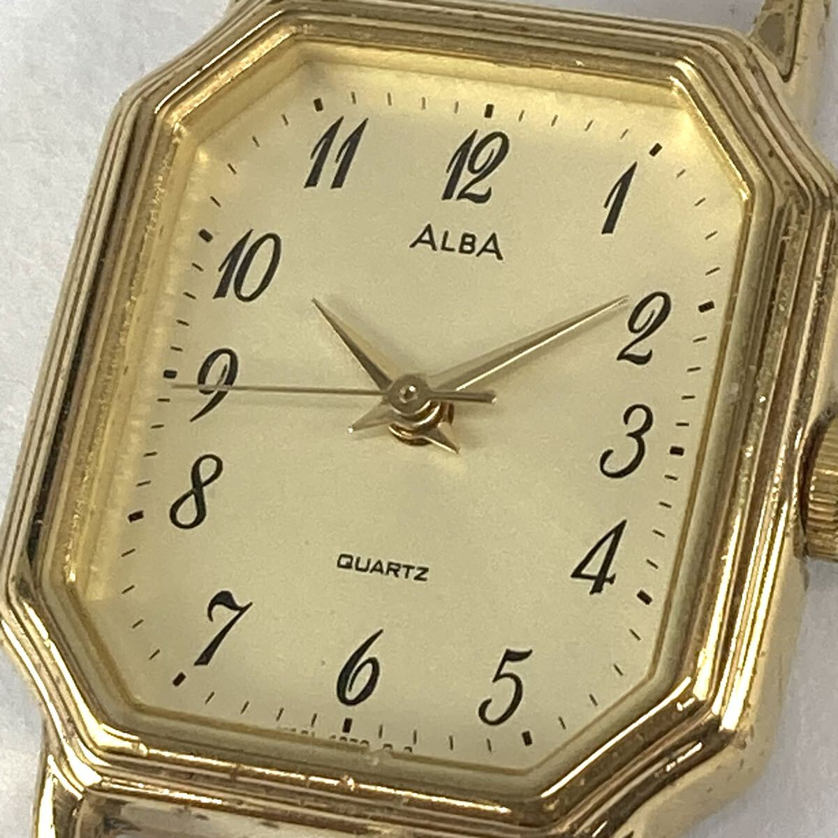 | 商品説明 | SEIKO ALBA セイコー アルバ オクタゴンフェイス ドレスウォッチ ゴールド アナログ クォーツ 腕時計 [材質] ステンレス [ケース] 約20mm [手首周り] ー [動力] クォーツ 電池式 [電池交換] 25/8月 [リュウズ] ◯ [動作] 稼働 (精度不明) [付属品] ー [状態B] 日常生活でついた多少の擦れがあります。 機能面に問題があるような目立ったキズや汚れはなく、まだ愛用いただける中古品として状態の良い時計です。 ■商品状態の目安 【N】 新品もしくは中古未使用品。 【S】 未使用、数回使用、デッドストック等で新品に近い商品。 【A】 キズや汚れが少なく、中古品として状態の良い綺麗な商品。 【B】使用感やキズ、ヨゴレはあるが機能面に問題のない良品、一般的な中古商品。 【C】 目立つヨゴレやキズ、色褪せなど使用感のある商品。 【D】 ヨゴレやダメージがひどいもの、または破損している難あり商品。 [採寸について] 大体の実寸(cm)をアナログメジャーで目視計測しています。 採寸の誤りや状態の見落としがあった場合はご容赦願います。 330/1100/250805ogawar V401-5800/5D0592 |
