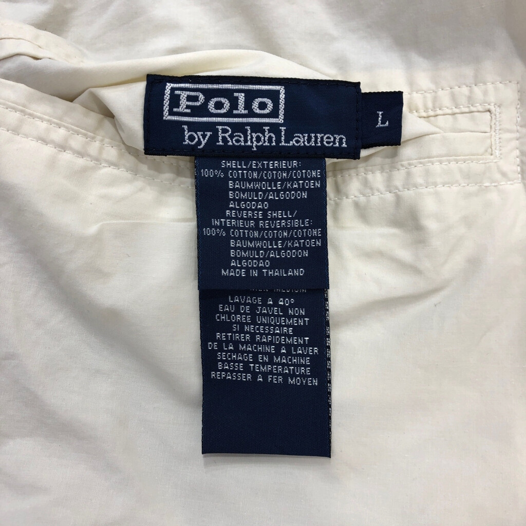 | 【商品管理番号】 V1454 【ブランド】 Polo by Ralph Lauren/ポロ ラルフローレン 【サイズ】 L 【実寸サイズ】 肩幅:約57cm 着丈:約76cm 身幅:約68cm 袖丈:約64cm 【主な素材】 表地 : コットン 裏地 : 13791 【色】 アイボリー 【仕様】 90年代 リバーシブル フードドローコード 【状態】 汚れ:フード、袖先、胸、背中、裾 ベージュ面:フード,袖,腹部,背中 | |||