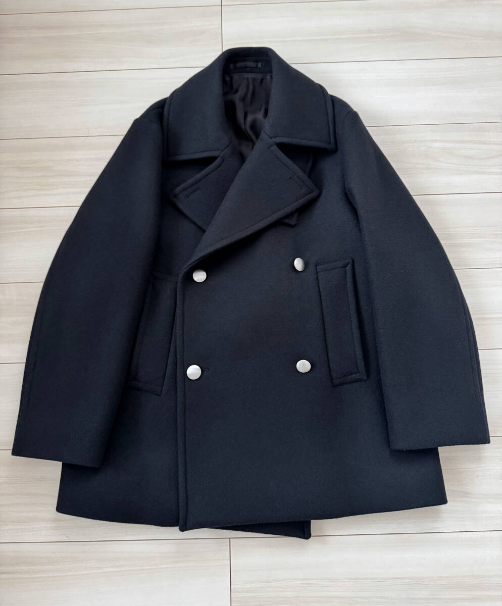 新品未使用 22AW ジルサンダー JIL SANDER Caban Coat メルトンウール ピーコート ジャケット アウター 46 黒 ブラック