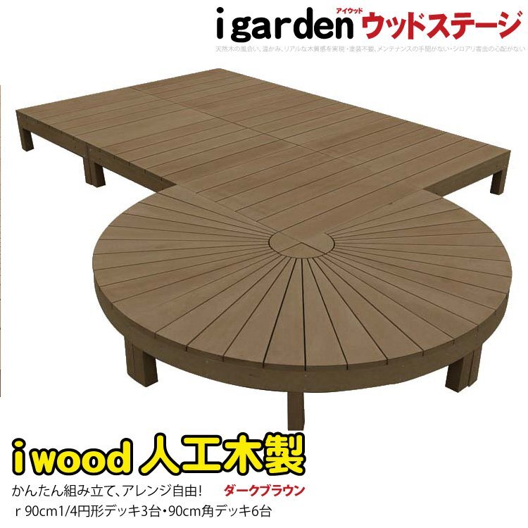 igarden アイウッドデッキ ステージ&ラウンド オープンタイプ 9点セット ダークブラウン 樹脂製 人工木 円デッキ 丸型 変形 10288 -3e6ddb