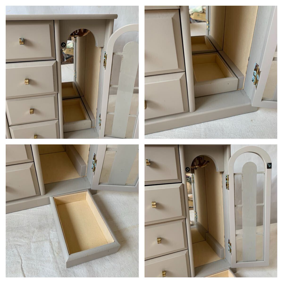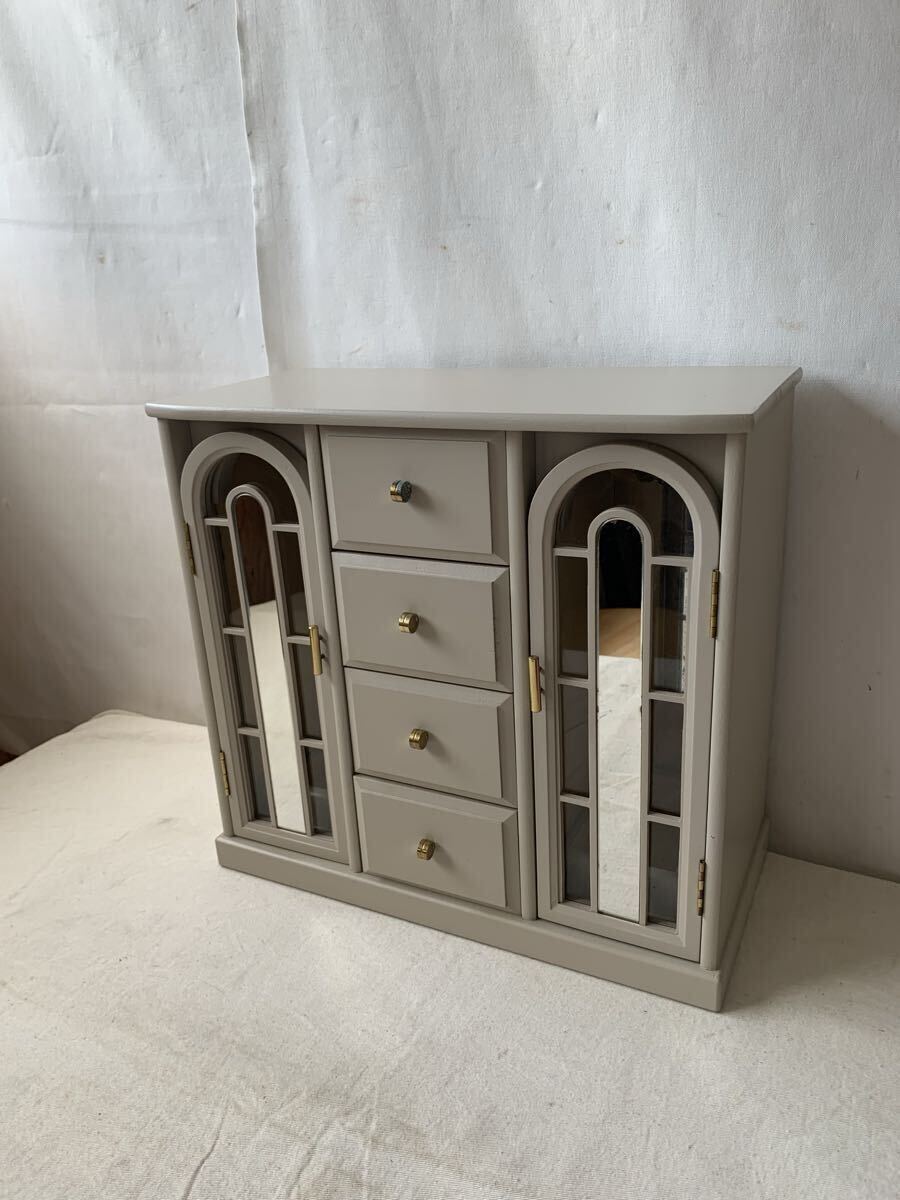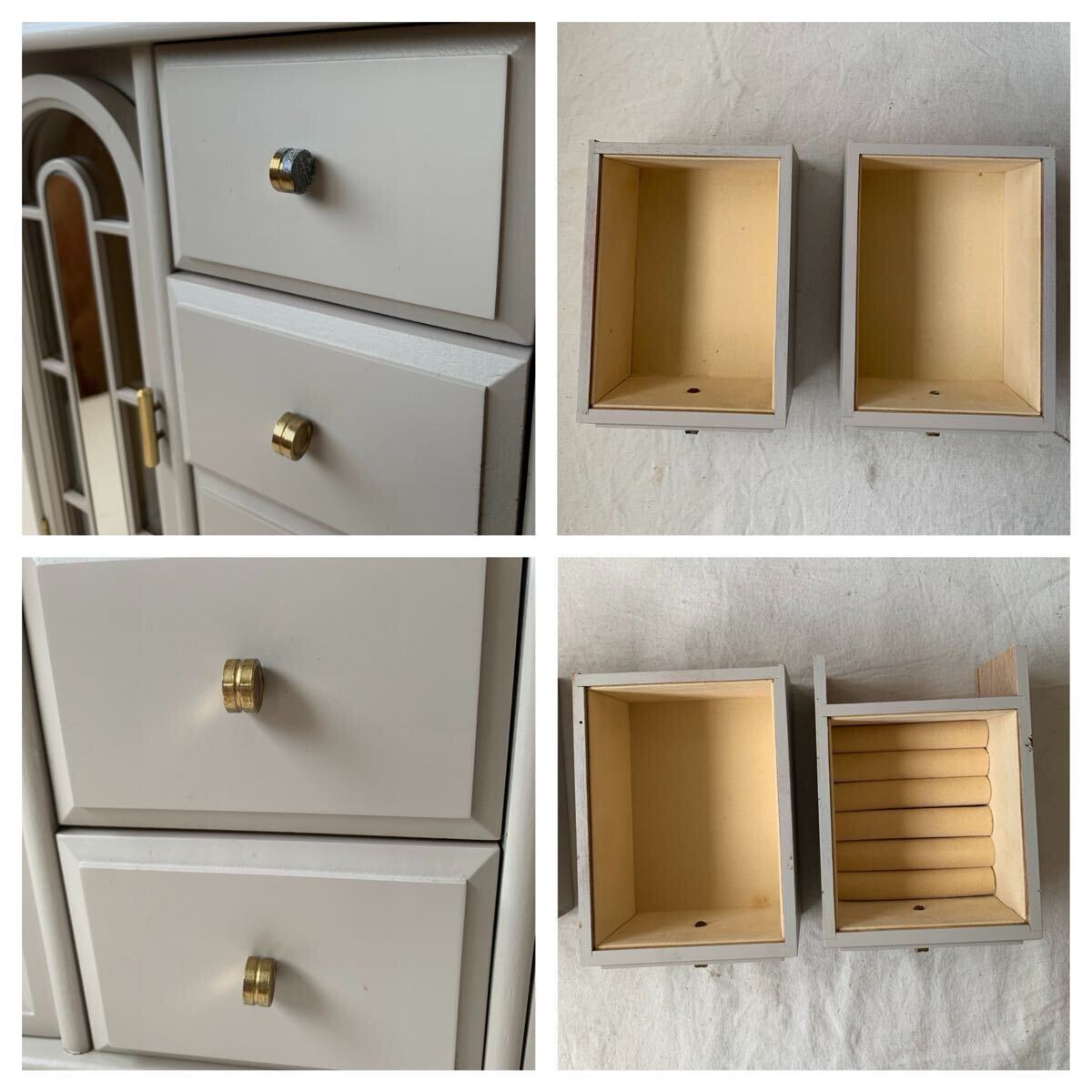 デッドストック品 デザインが素敵な木製ジュエリーボックスです。収納がたくさん付いており、小物やアクセサリーなどを収納するお部屋のインテリアやお店のディスプレイ、イベント出店時の什器などに使って頂くと素敵だと思います。オルゴールは機能しておりません。