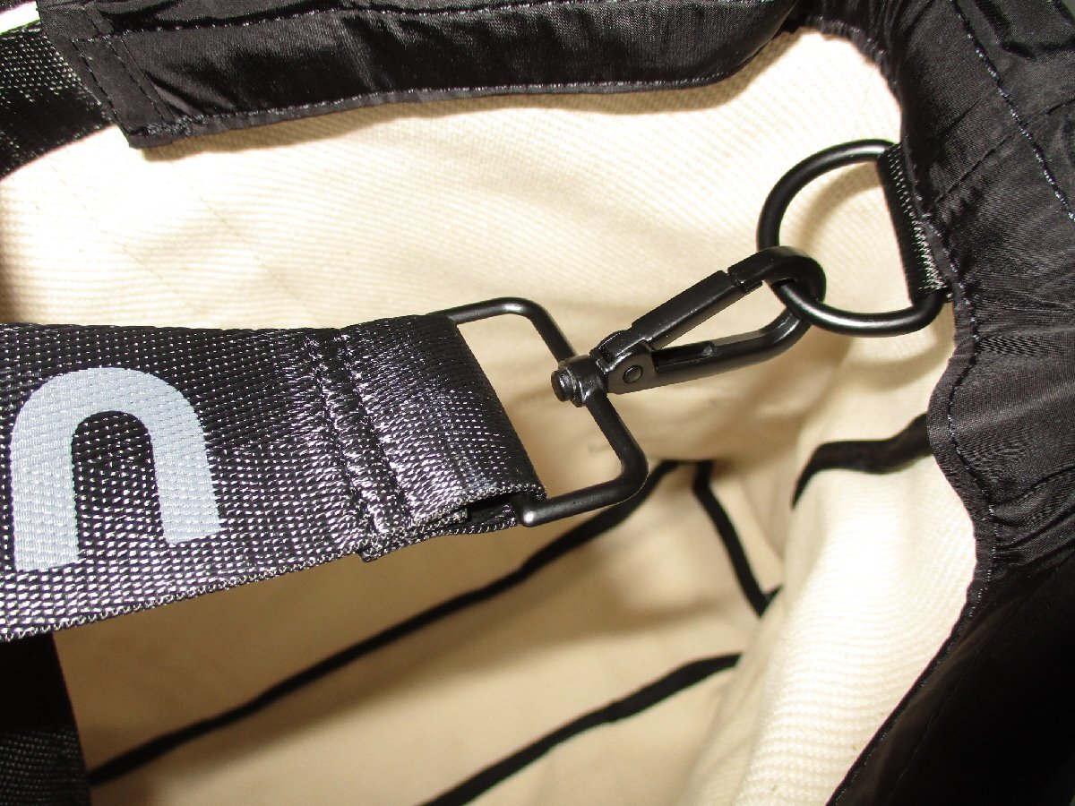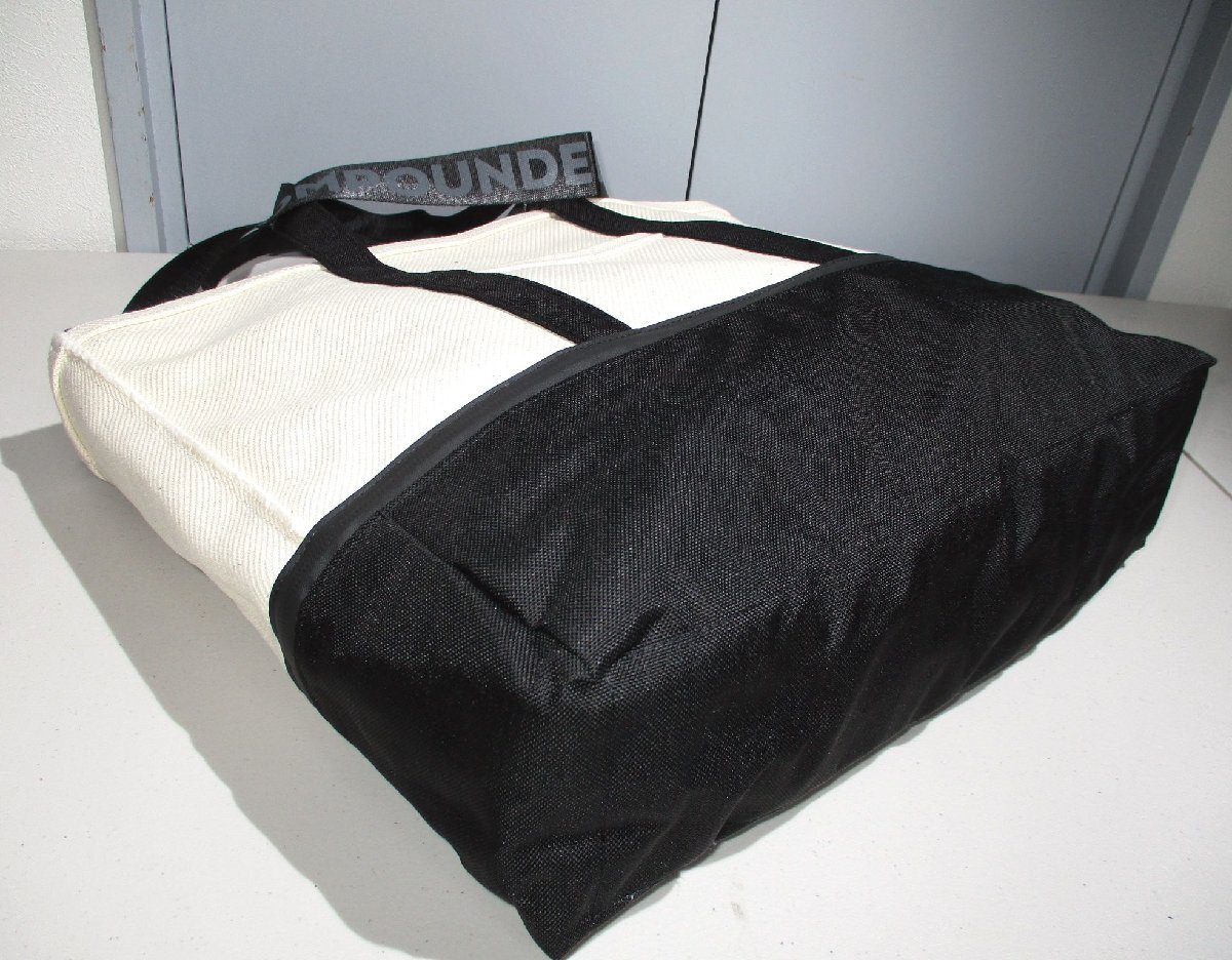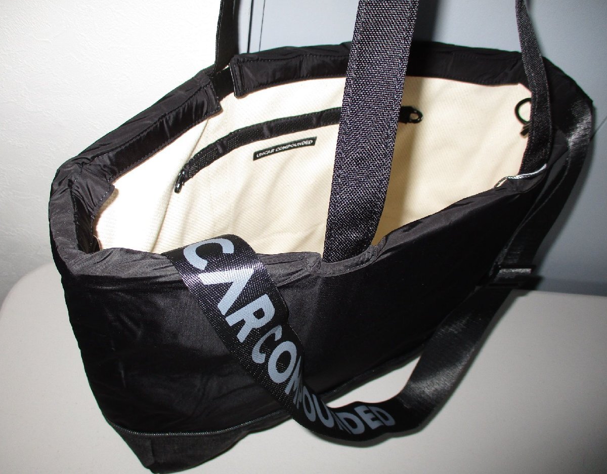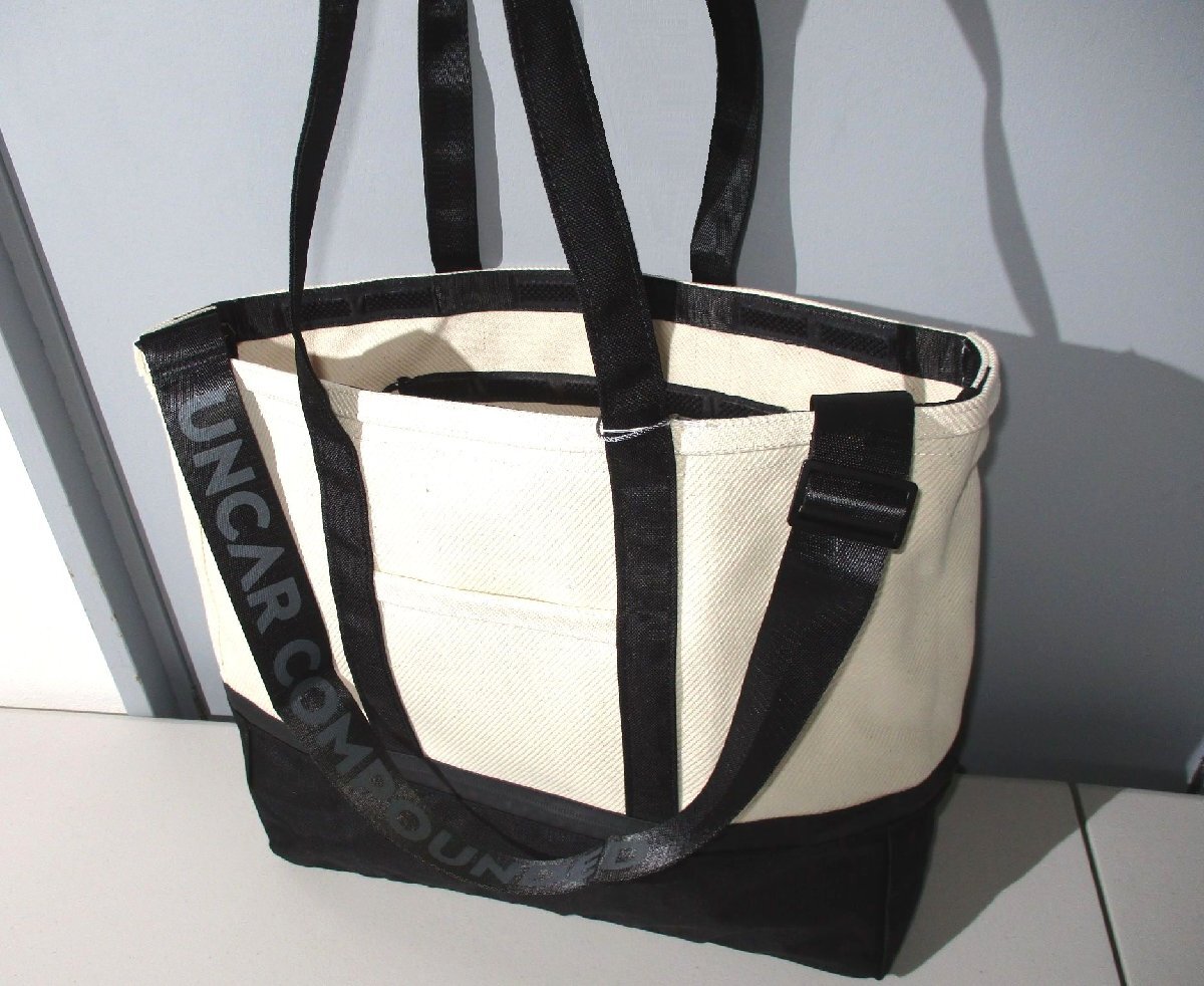 ビームスのセレクトラインから発売された、UNCAR COMPOUNDED(アンカーコンパウンデッド)の2wayトートバッグです。 (紡績~製織~加工など全ての工程を国内生産された)非常に質感が良く高密度で丈夫感があり、立体感のあるツイル綾織り目がとても美しい綿帆布を採用。バッグ下部の黒い部分(写真9枚目参照)の中に黒のカバーが内蔵されており(ファスナーを開けて)、カバーを引っ張り出して全体を覆い、マジックテープで止めると写真1・2・3枚目のように、一気に秋冬の装いになります。雨風に強くお手入れも簡単。カバー使用時は秋冬物、未使用時は春夏物としてオールシーズン使える便利なトート。丈夫で耐久性が高く非常に扱いやすい、末永くご使用いただける逸品です。