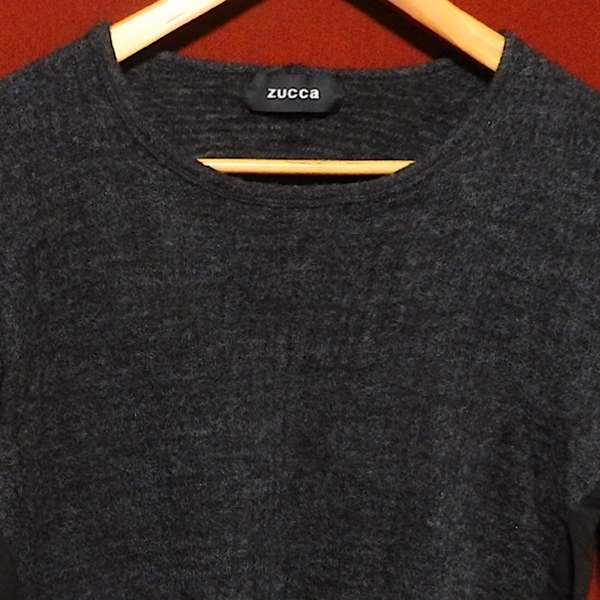・ZUCCAのデザイン.切り返し.ツートーン.ニット.カットシーになります。