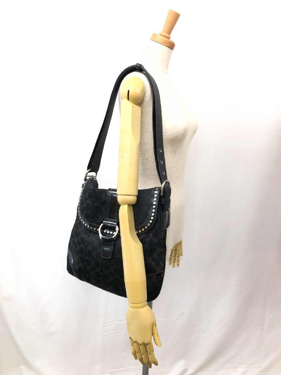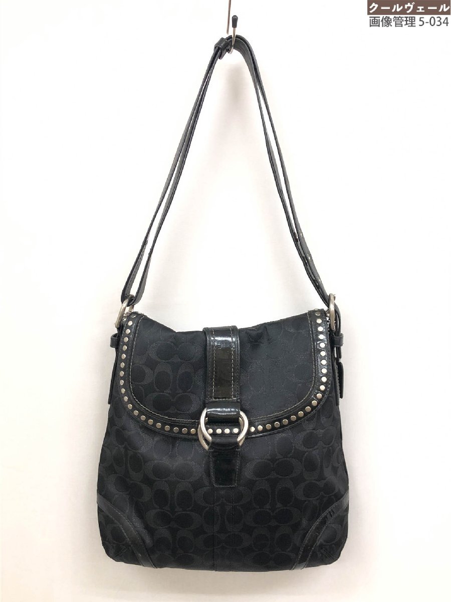 【コーチ COACH】 F12852 シグネチャー ショルダーバッグ スタッズ キャンバス (レディース) ブラック ◇5LG3177◇