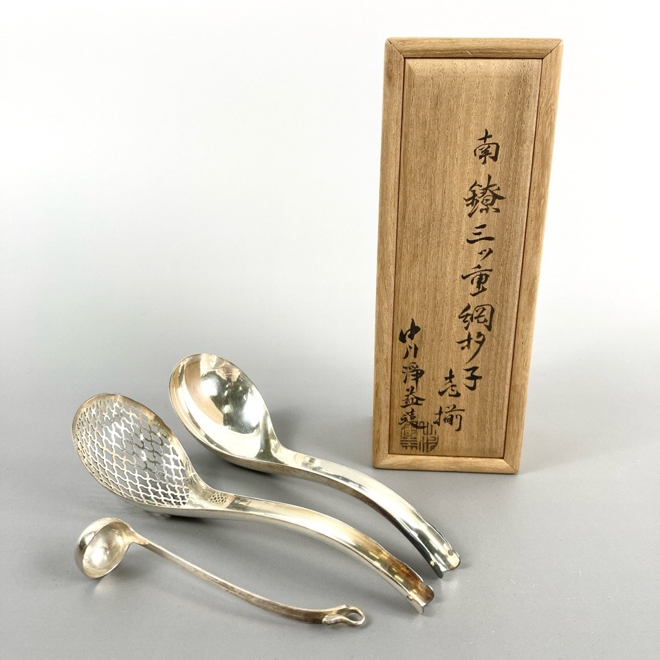 | 商品名 | 中川浄益 南鐐三ツ重網杓子壱揃 共箱 総重量57g 茶道具 真作 銀製 茶道具 4274583 |