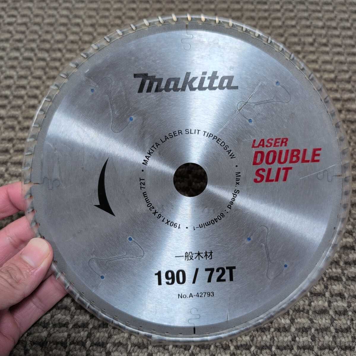 ジャンク品/長期保管品/マキタ/A-42793/レーザーダブルスリットチップソー/携帯マルノコ用/造作用/外径190/刃数72/刃厚1.6/穴径20