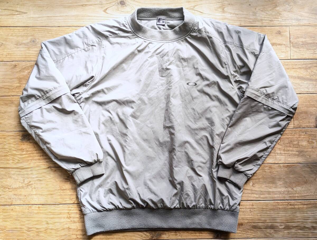 送料無料♪オークリー OAKLEY 袖切替え 裏地付ナイロンジャンパー プルオーバー size M メンズ シルバーグレー アウトドアゴルフ USED古着