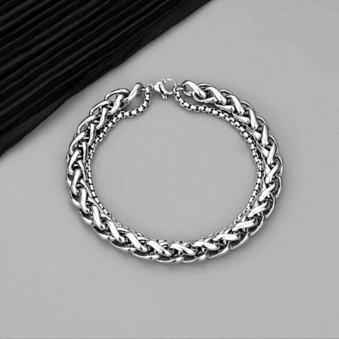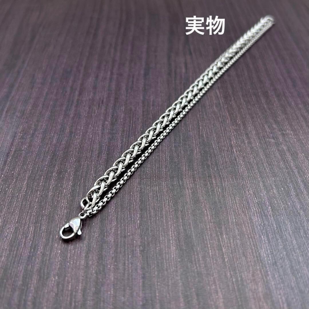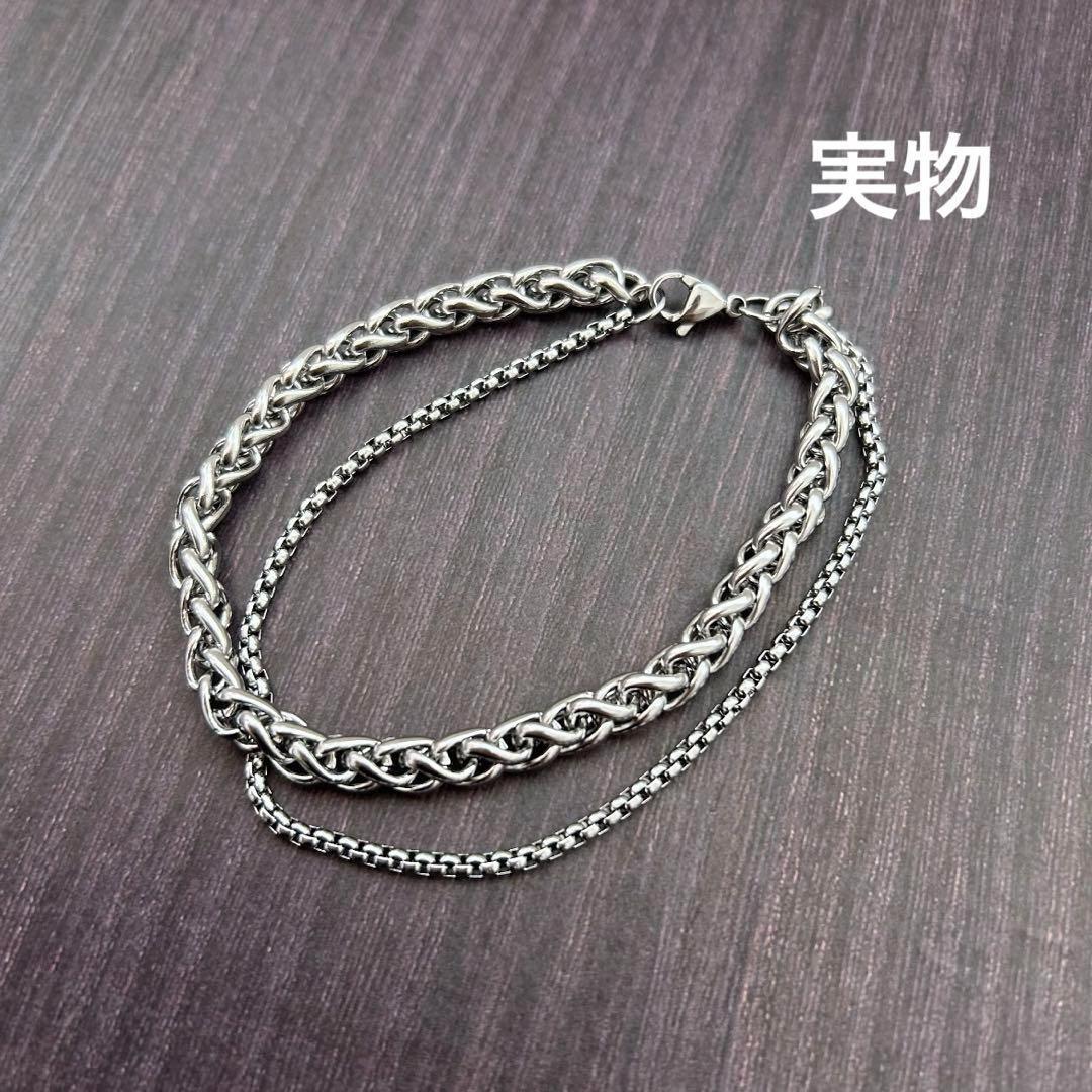 メンズ ブレスレット バングル チェーン ダブルチェーン メンズアクセ カジュアルアクセ HIPHOP 原宿 Y2K ストリート アメカジ モード ギフト プレゼント クリスマス 誕生日 誕プレ バレンタイン 記念日 ホワイトデー シルバーアクセ シルバー シンプル クロスボーダー